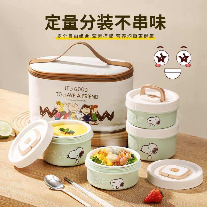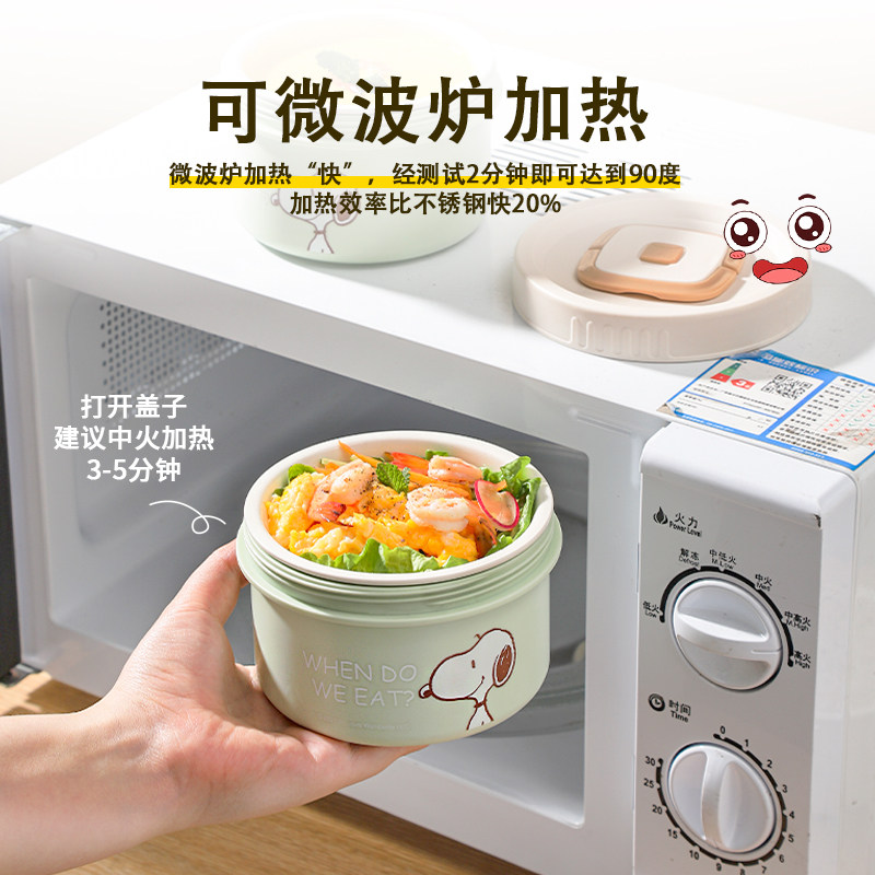 史努比保温饭盒陶瓷饭碗上班族带饭神器便当盒可微波炉加热小餐盒