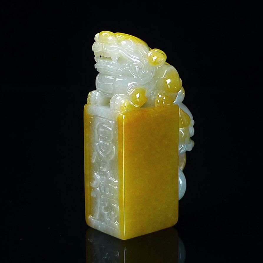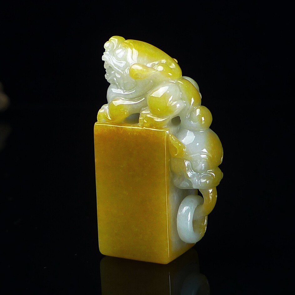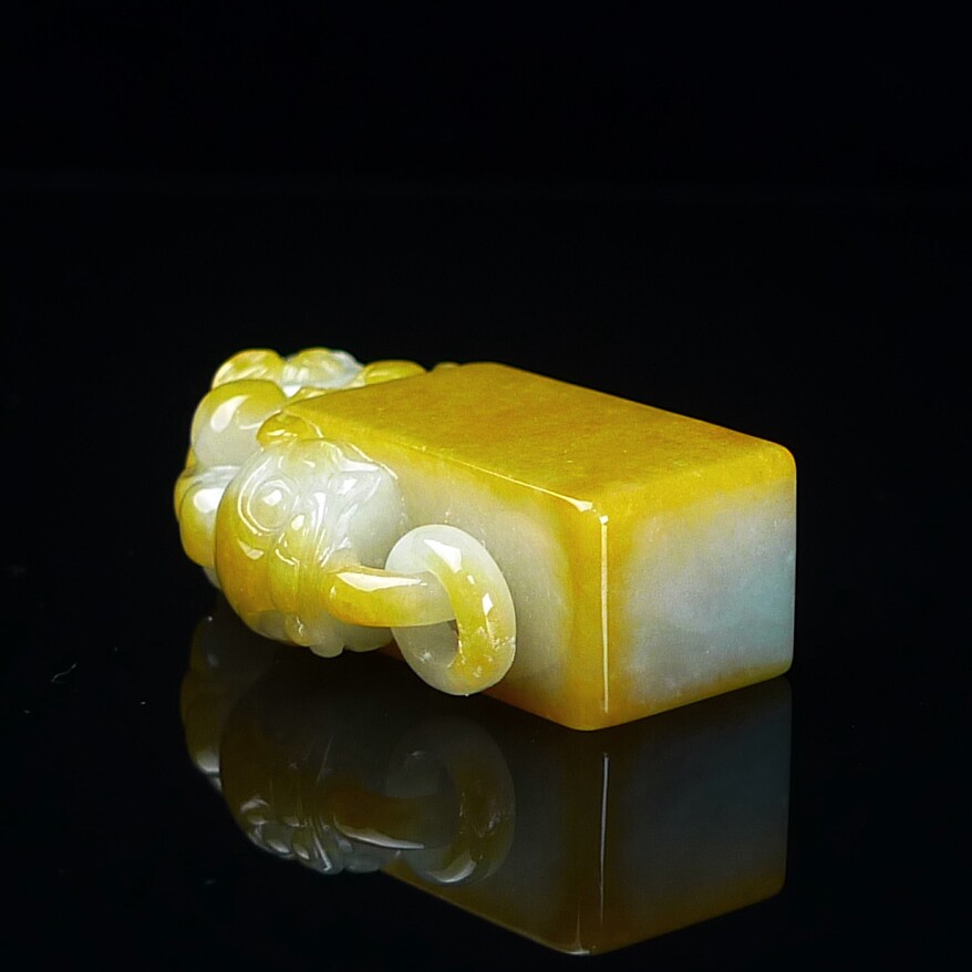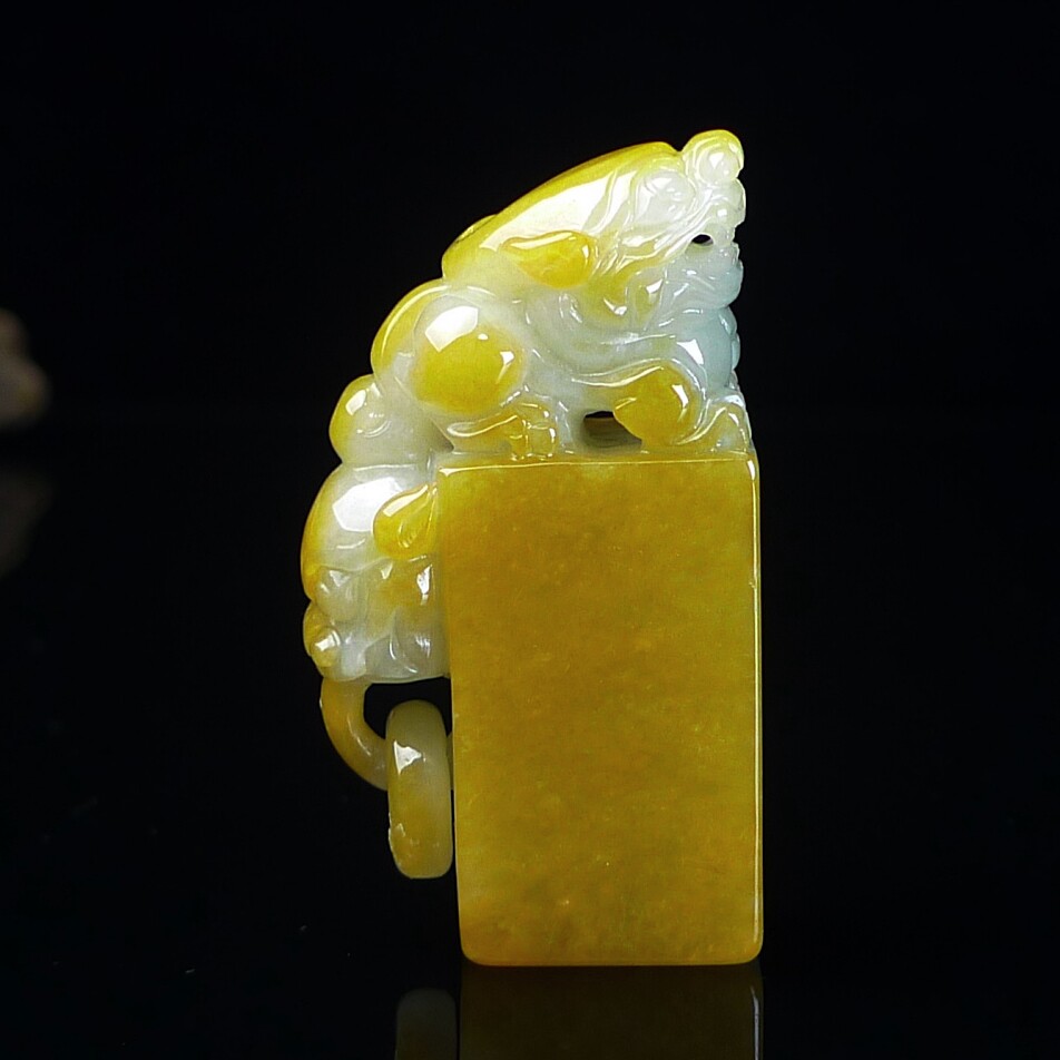 缅甸翡翠A货黄翡貔貅印章玉石 黄翡翠貔貅印章摆件 篆刻代刻字