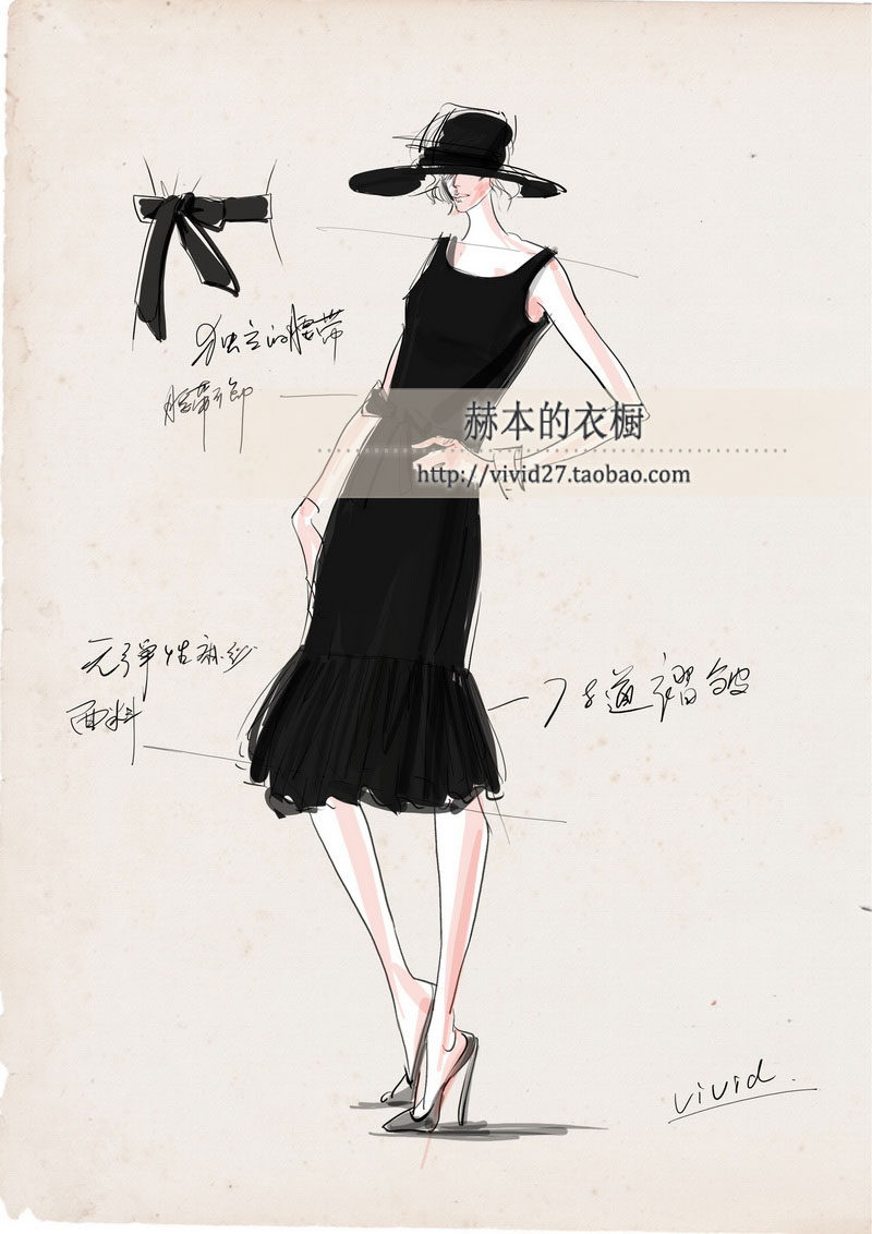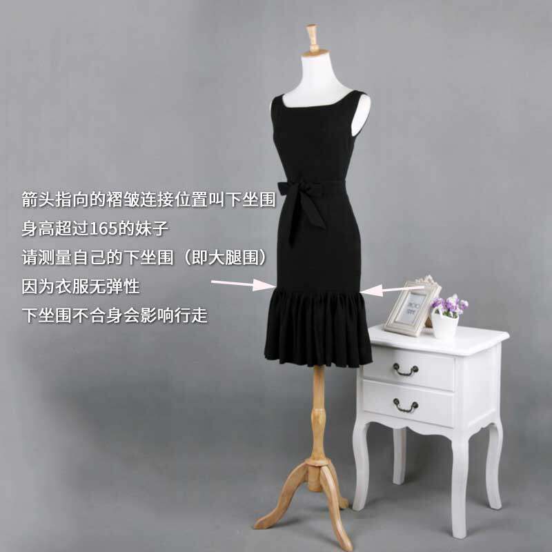 独家自制荷叶摆修身连衣裙大牌名媛显瘦赫本小个子小黑裙