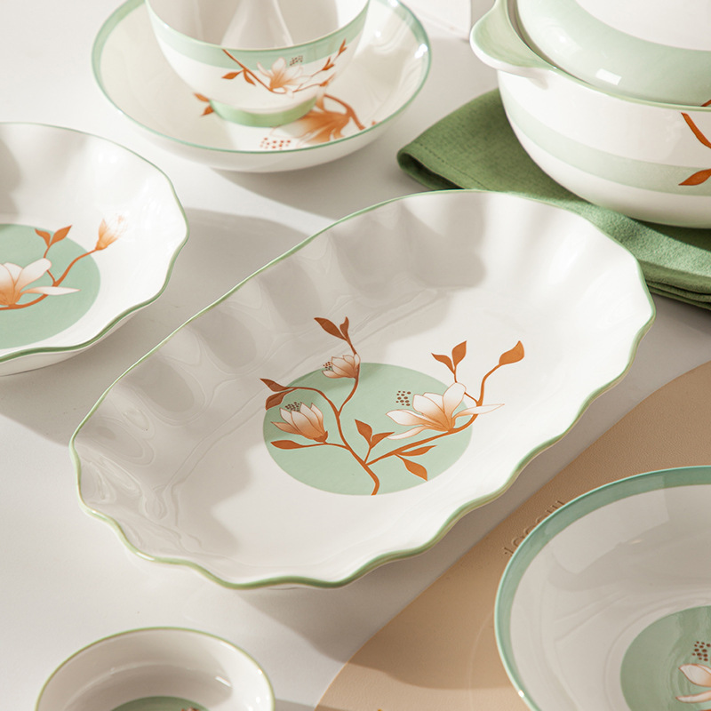 清新萌网碗碟套装家陶具乔礼品碗装趣红用瓷餐迁陶瓷创意碗汤套