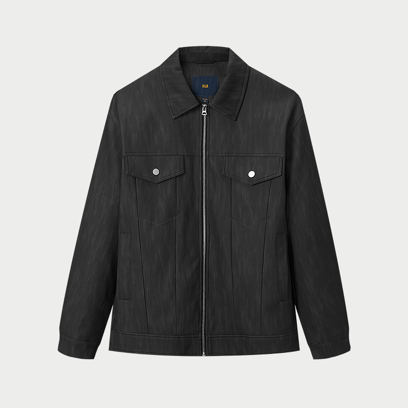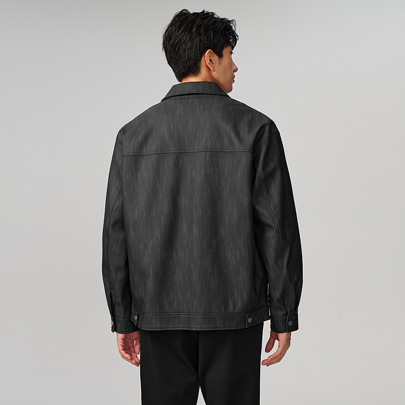 HLA/海澜之家翻领PU皮夹克25秋新款经典休闲美式工装皮衣外套男装