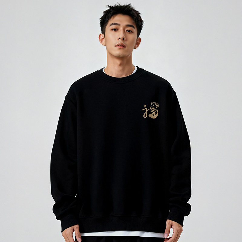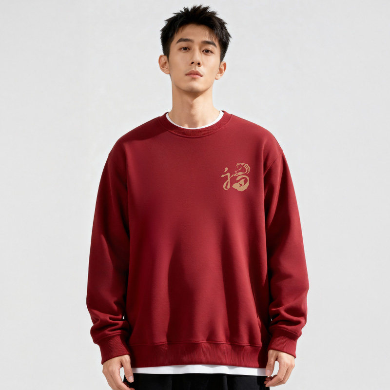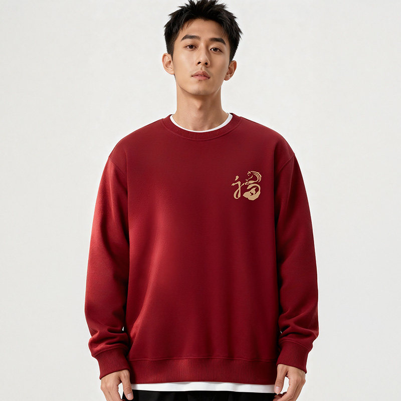2026新春卫衣男士本命年马年加绒红色圆领秋冬季过年新年衣服卫衣