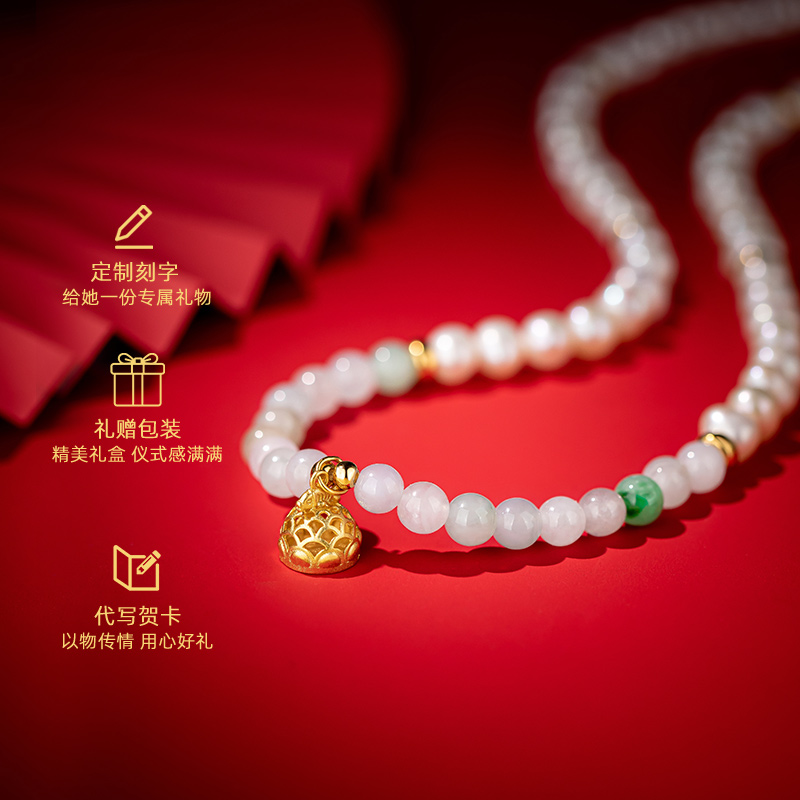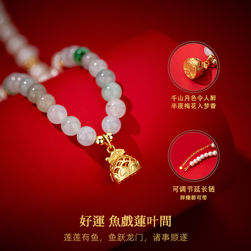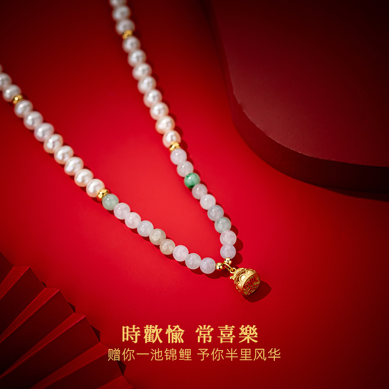 莲年有鱼翡翠淡水珍珠银项链配饰女轻奢小众2025新款爆款马面裙