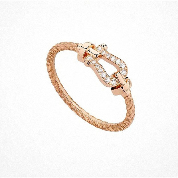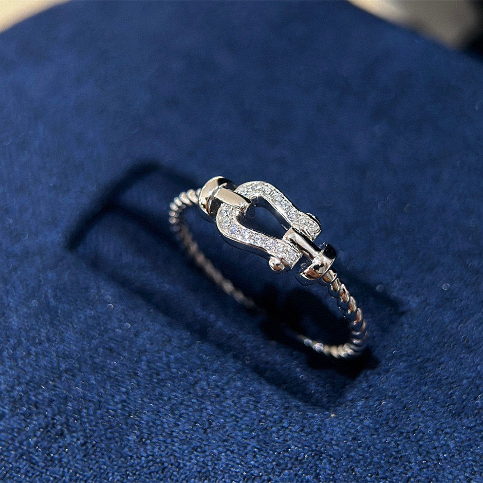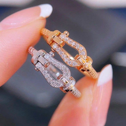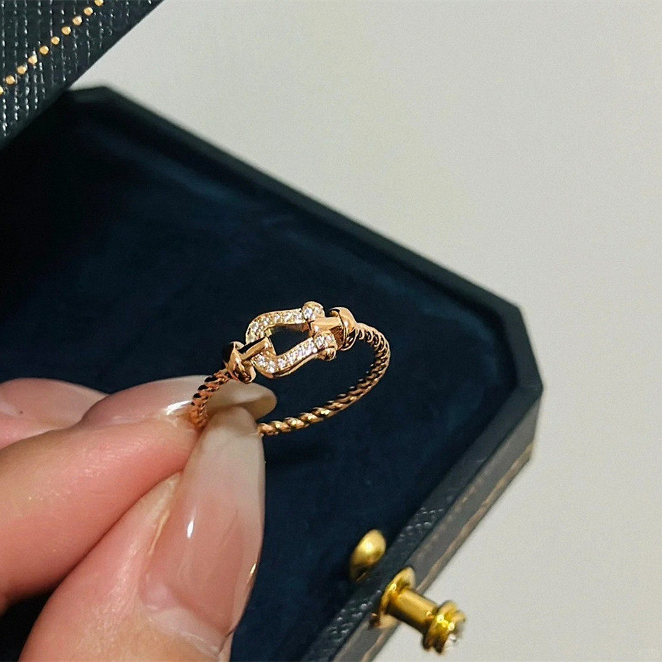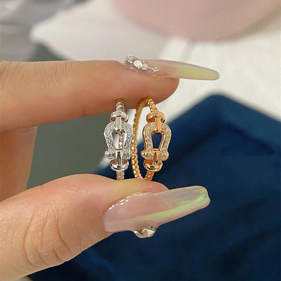 F.D马蹄扣戒指 女纯银玫瑰金带钻U型细版迷你对戒食戒简约ins风潮