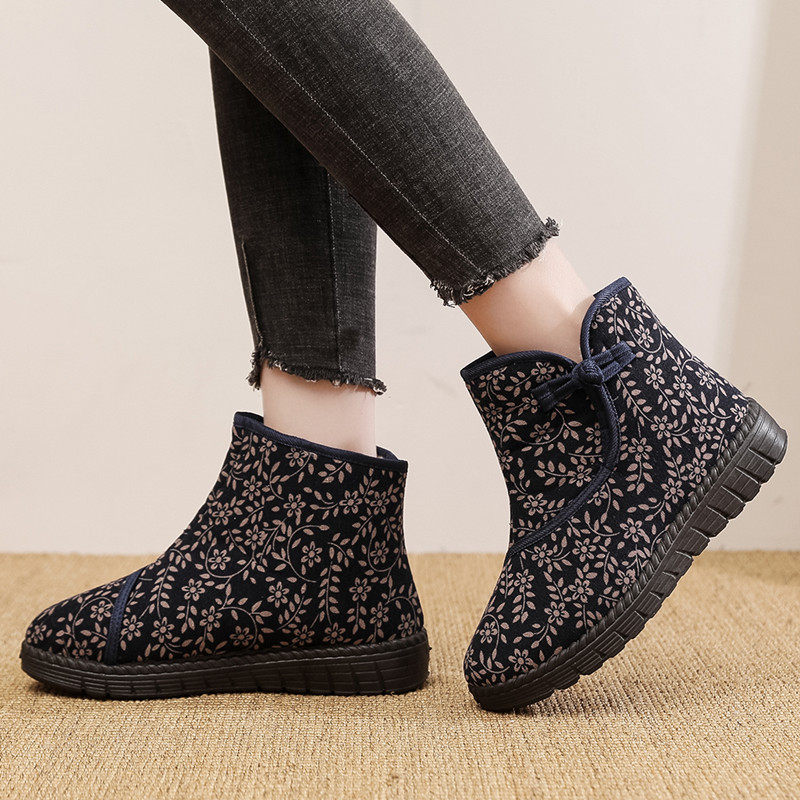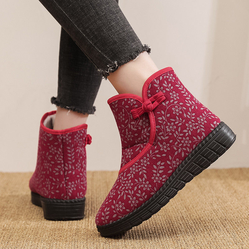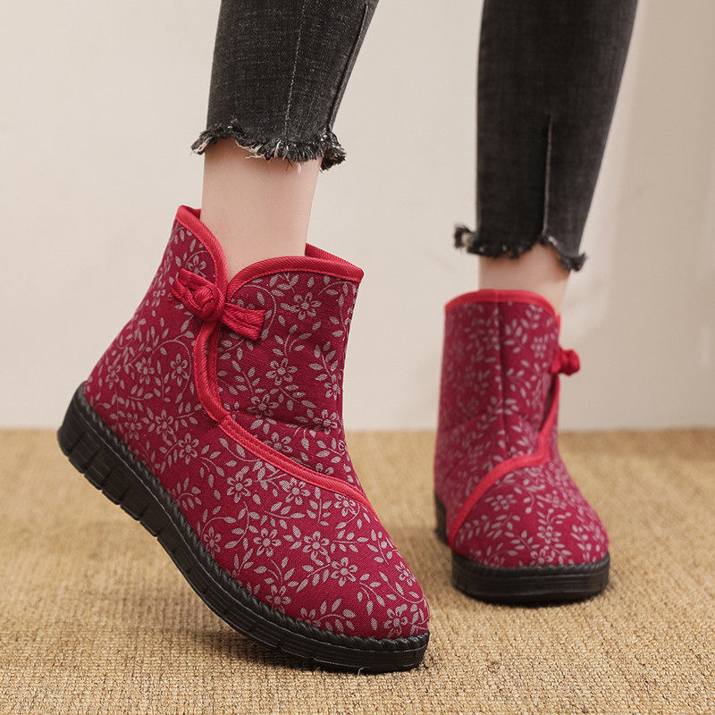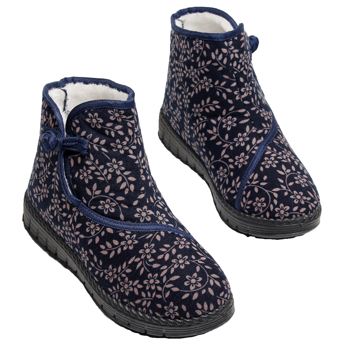 秋冬季老北京布鞋女士加绒保暖棉鞋妈妈鞋民族风碎花中老年雪地靴
