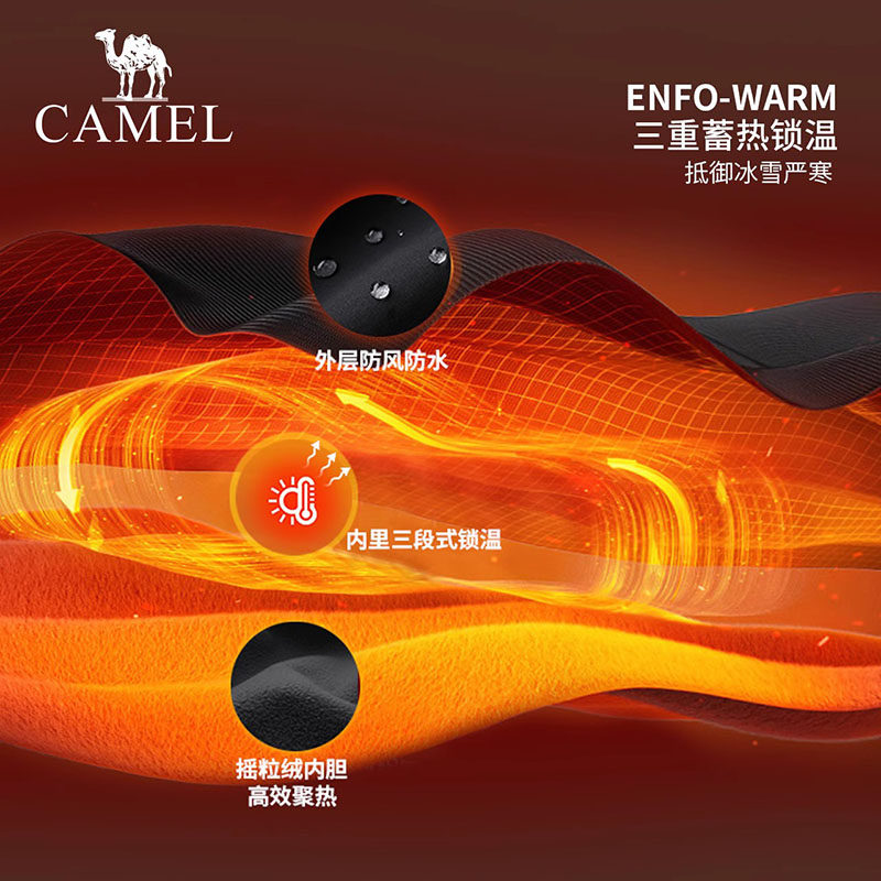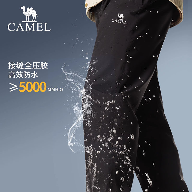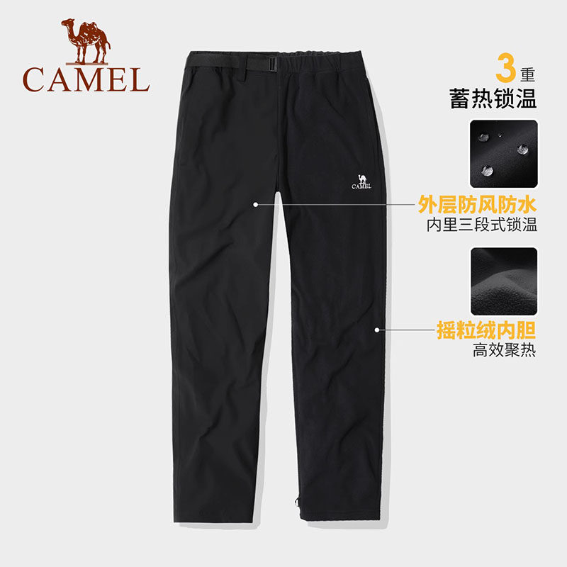 骆驼户外冲锋裤男三合一春秋防风防水加厚保暖登山滑雪长裤羽绒裤