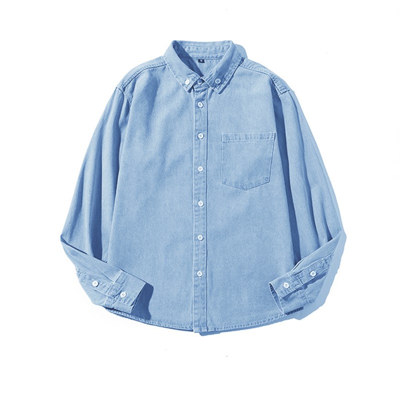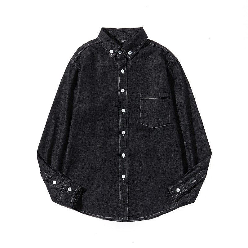 外贸春秋水洗牛仔衬衫长袖潮流百搭男装工装衬衣日系休闲外套