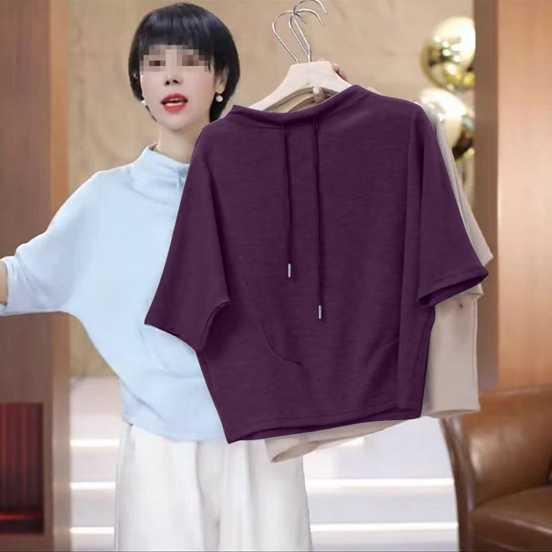 蝙蝠袖设计感t恤女夏装新款宽松大码显瘦洋气减龄百搭半袖上衣