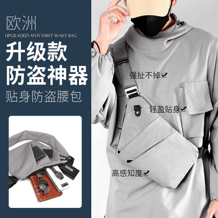 欧洲贴身防盗包腋下斜挎包枪包男士胸包旅行防盗背包胸前包小背包
