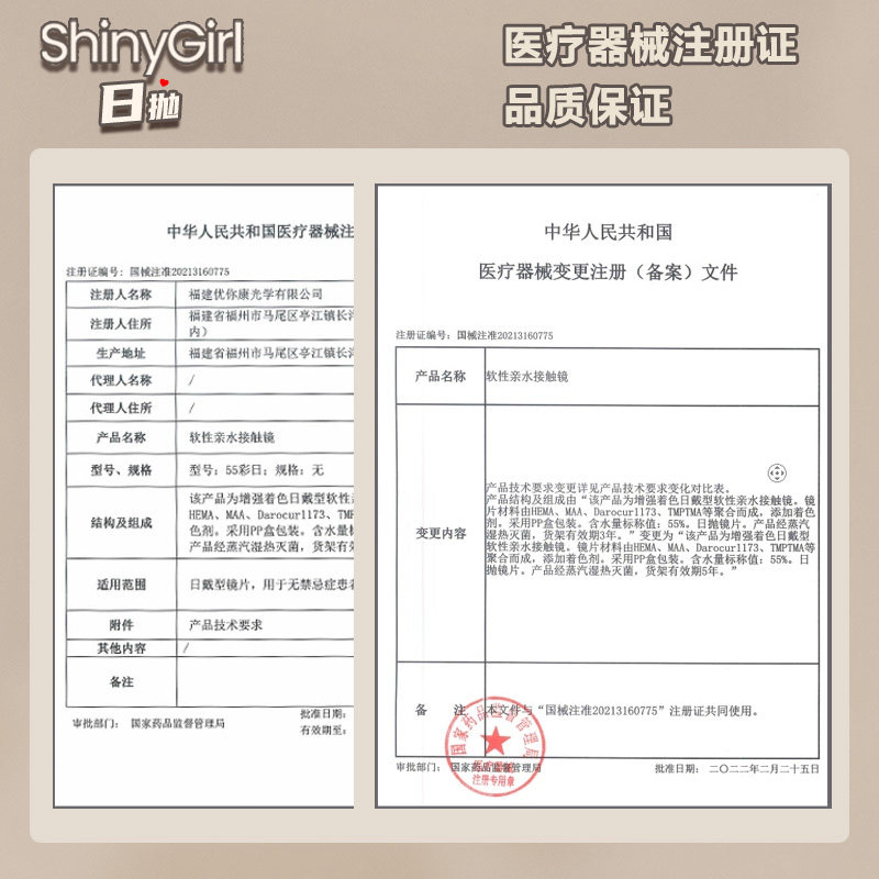 shinygirl美瞳日抛10片隐形眼镜自然日常素颜婚纱大小直径无锁边