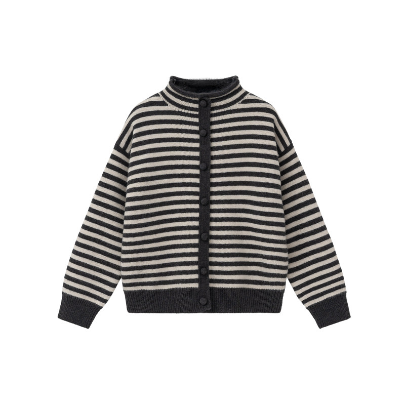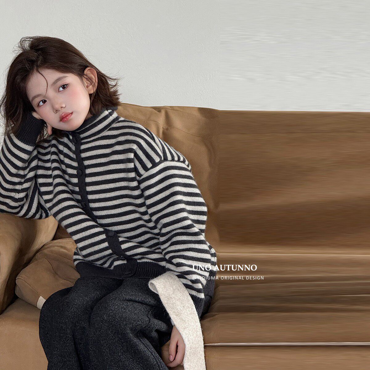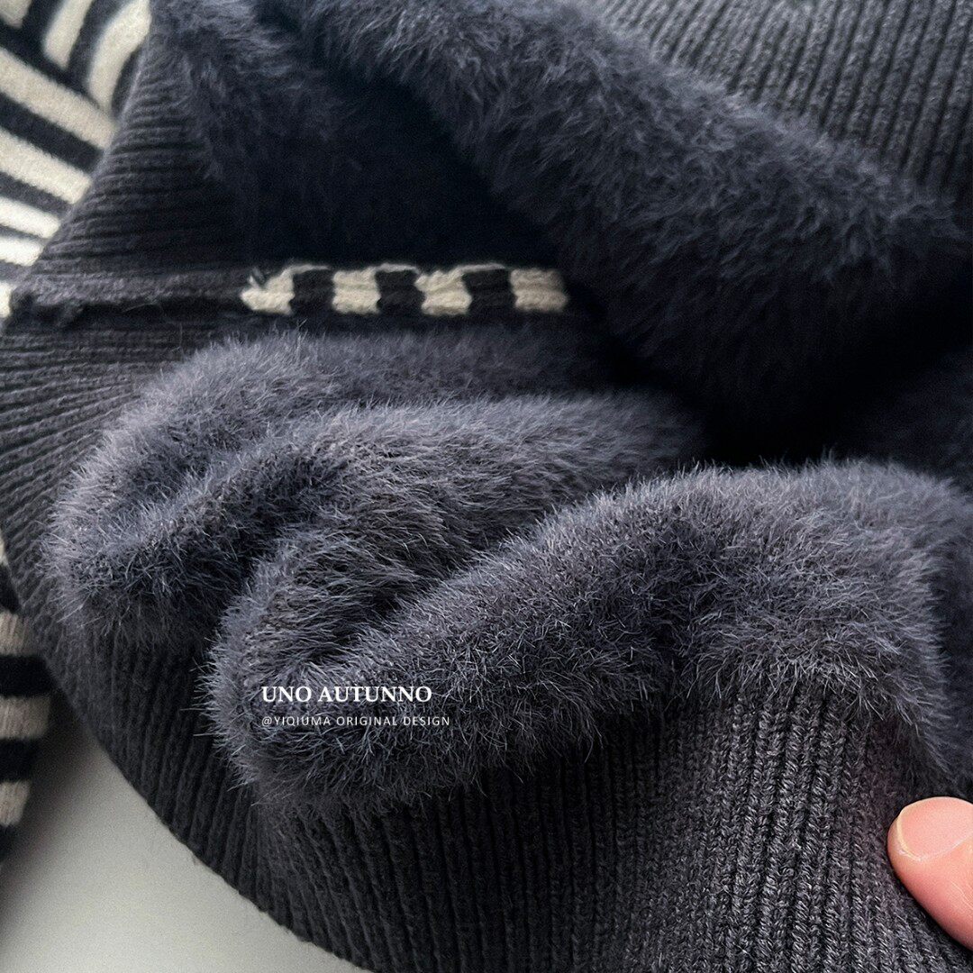 女童2025冬季新款混水貂中大童加绒条纹毛衣加厚百搭套头针织衫潮