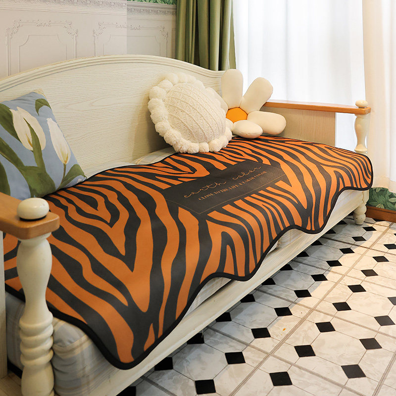 枕西湖北欧斑马纹异形沙发垫夏季冰垫冰丝凉席坐垫子防滑盖巾套罩