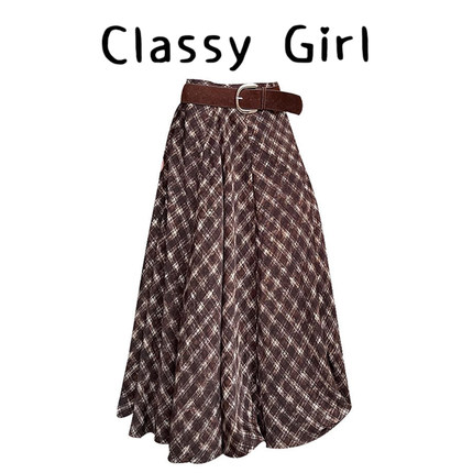 美拉德复古格子高腰半身裙女秋季宽松设计感显瘦百搭垂感中长裙