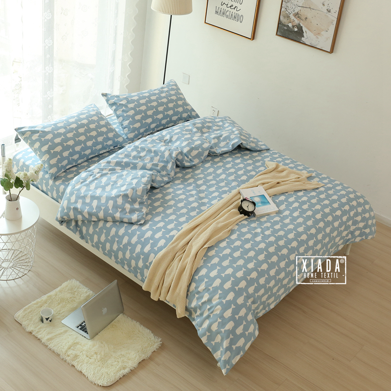 儿童卡通四件套纯棉斜纹床单式1.51.8m2.0米床双人简约4件套秋冬
