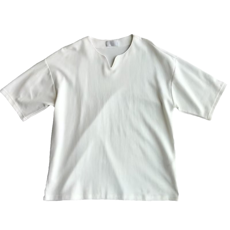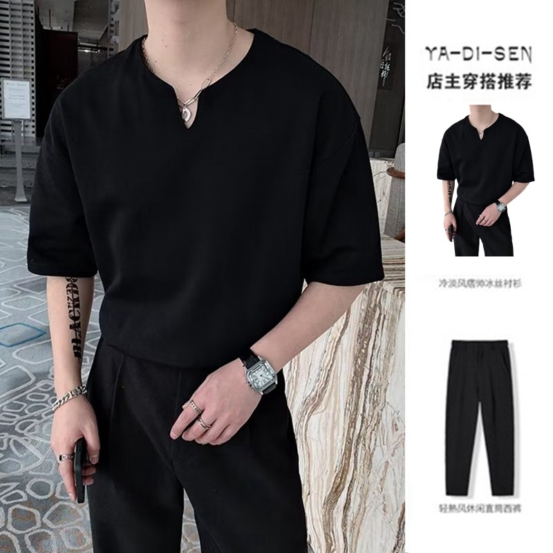 夏季高级设计感V领短袖网红t恤男韩版ins宽松纯色半袖打底衫潮流