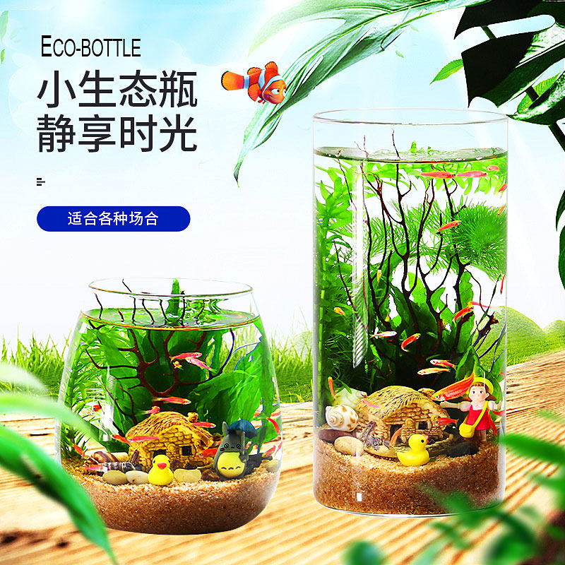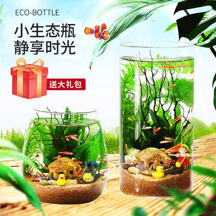 观赏生态瓶鱼微景观免换水免打理diy水族办公桌面创意造景鱼缸