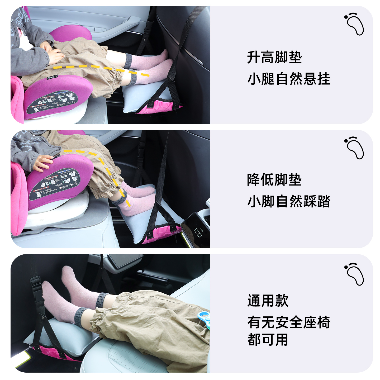 安全座椅脚踏板儿童长途坐车神器充气脚托垫汽车内载后排宝宝脚蹬