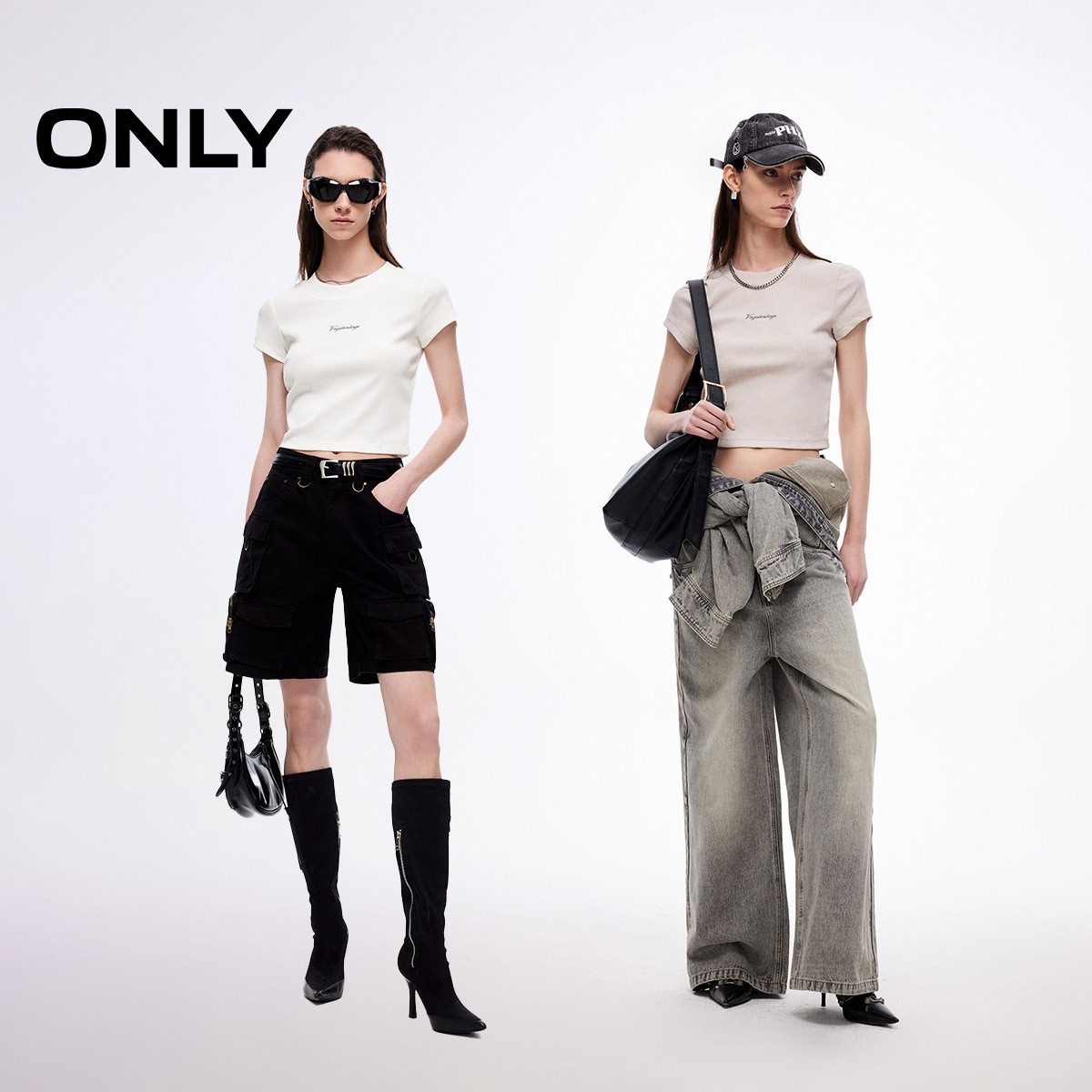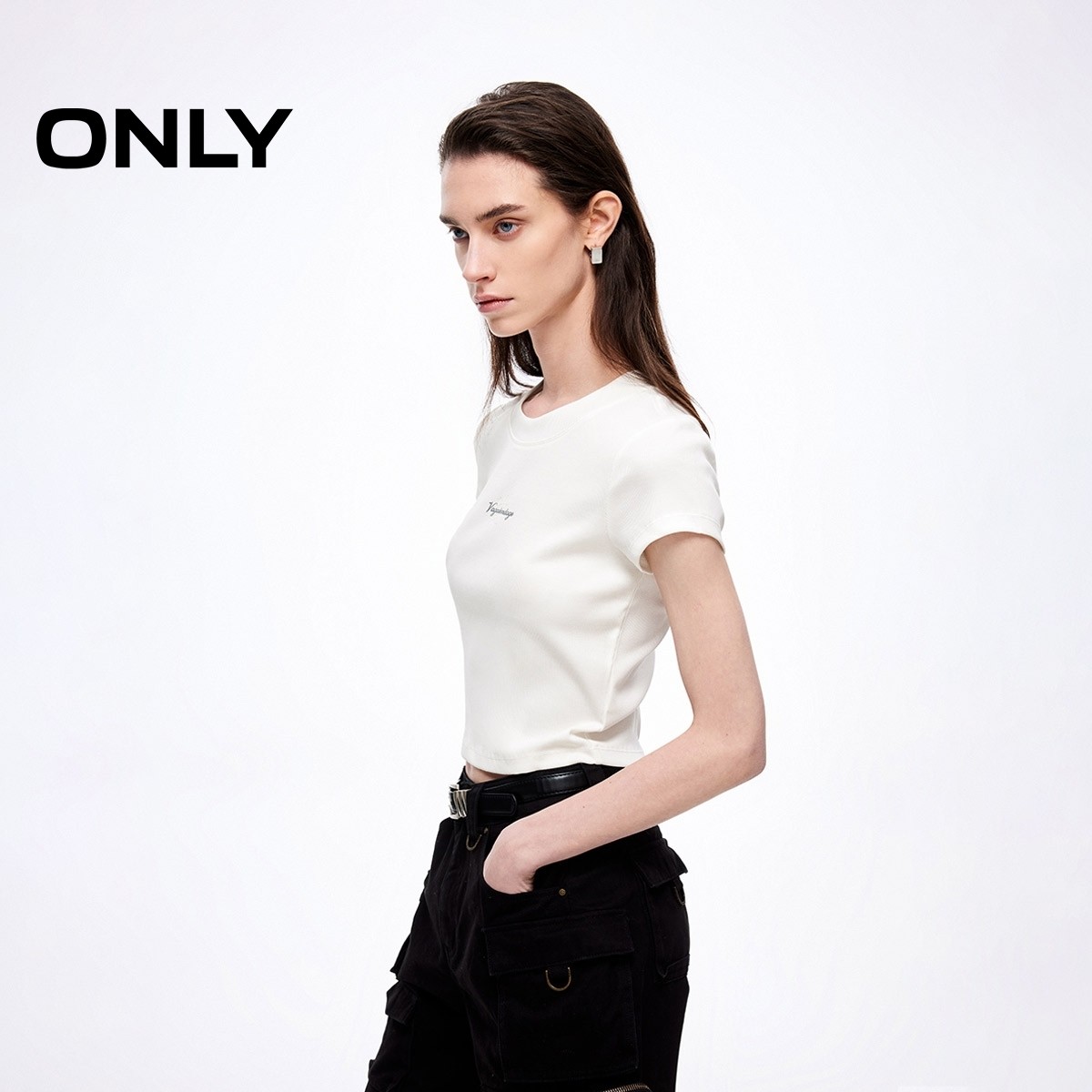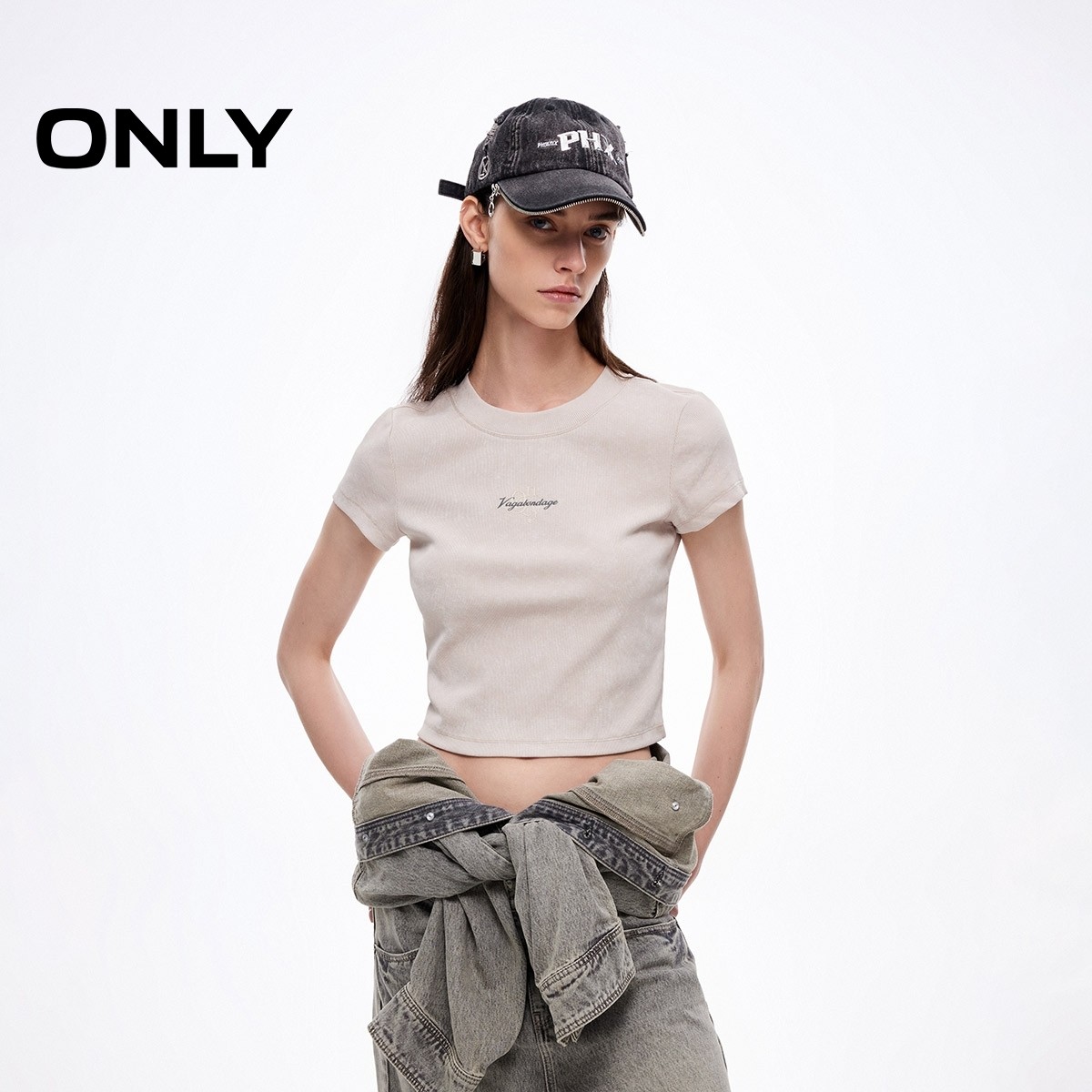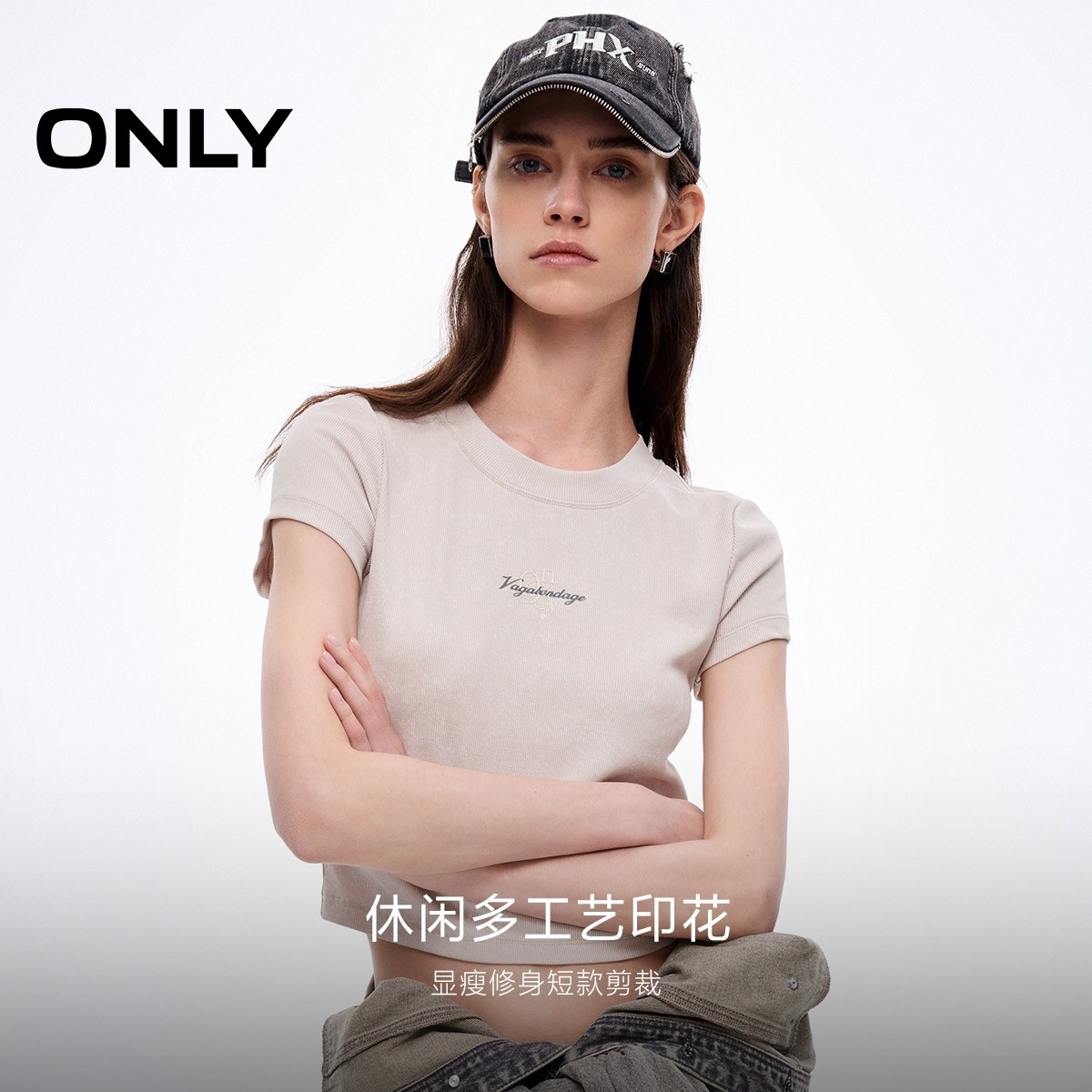 ONLY2025夏季新款质感螺纹亲肤柔软多工艺印花显瘦修身短款T恤女