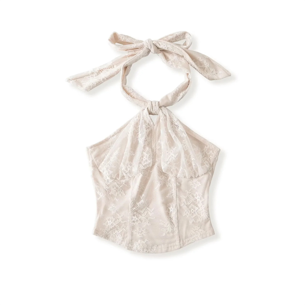 辣妹风系带挂脖蕾丝背心女外穿2025新款夏季露背性感紧身抹胸上衣