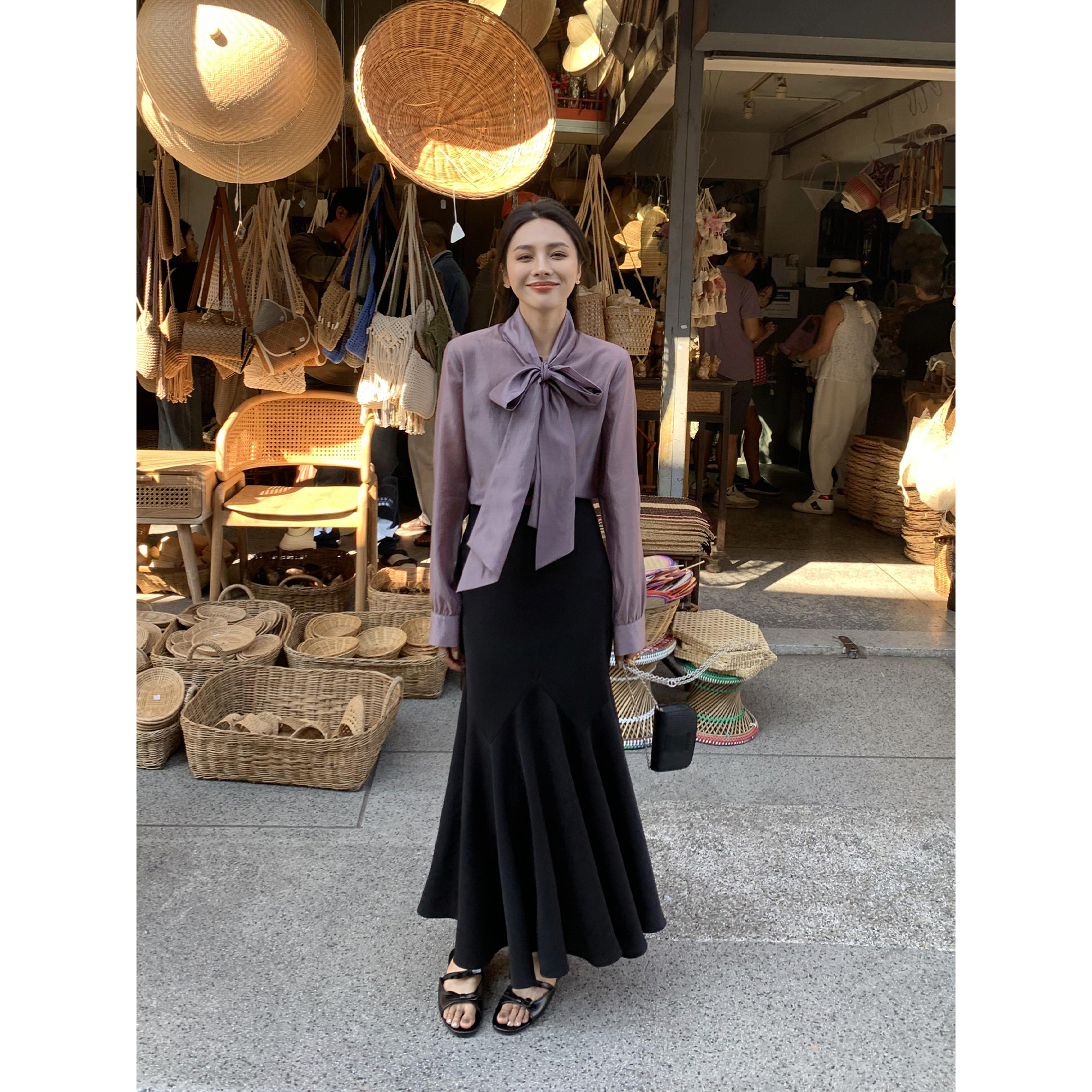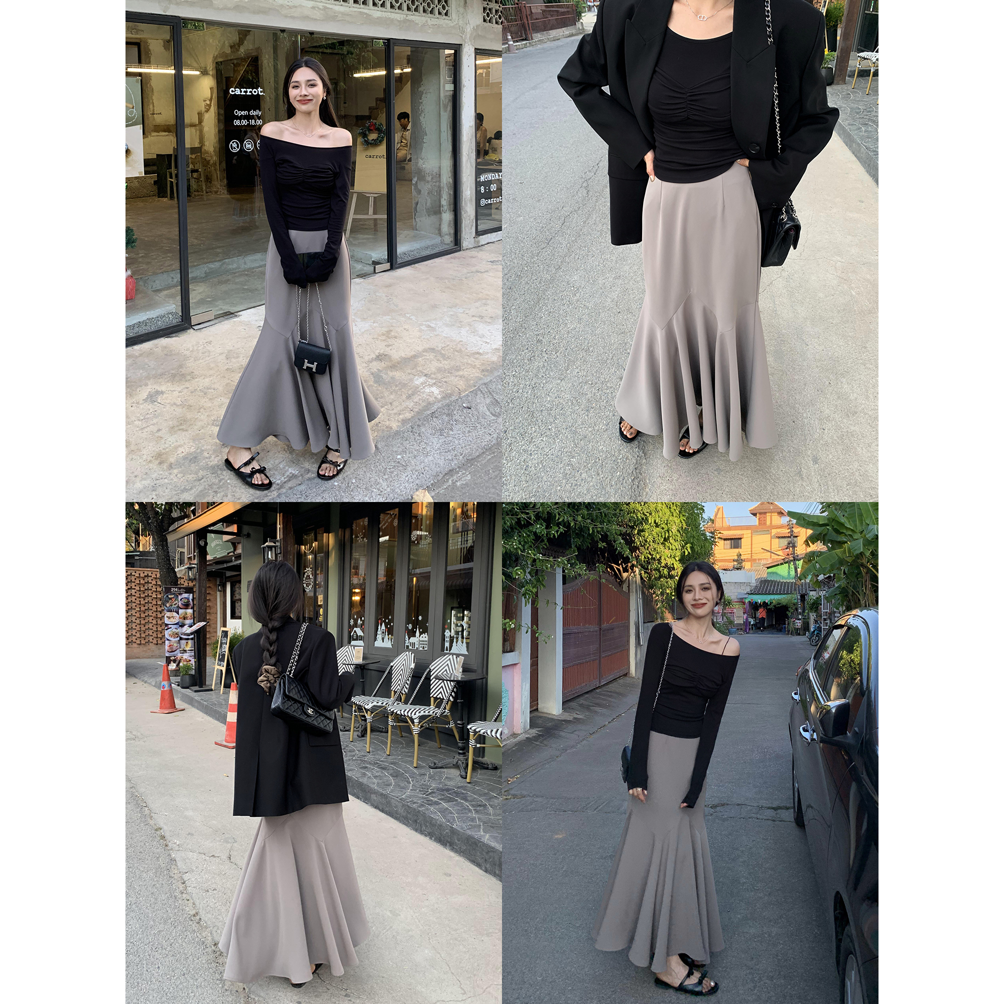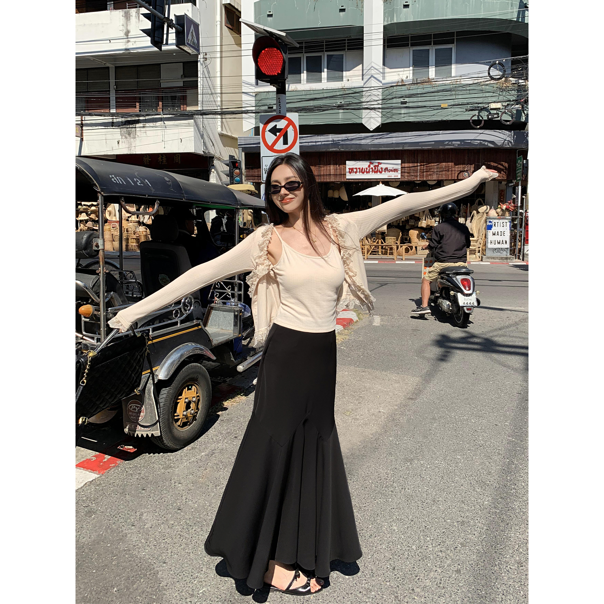 辰米范 黑色鱼尾半身裙女春秋高腰大摆裙2025年修身显瘦包臀长裙