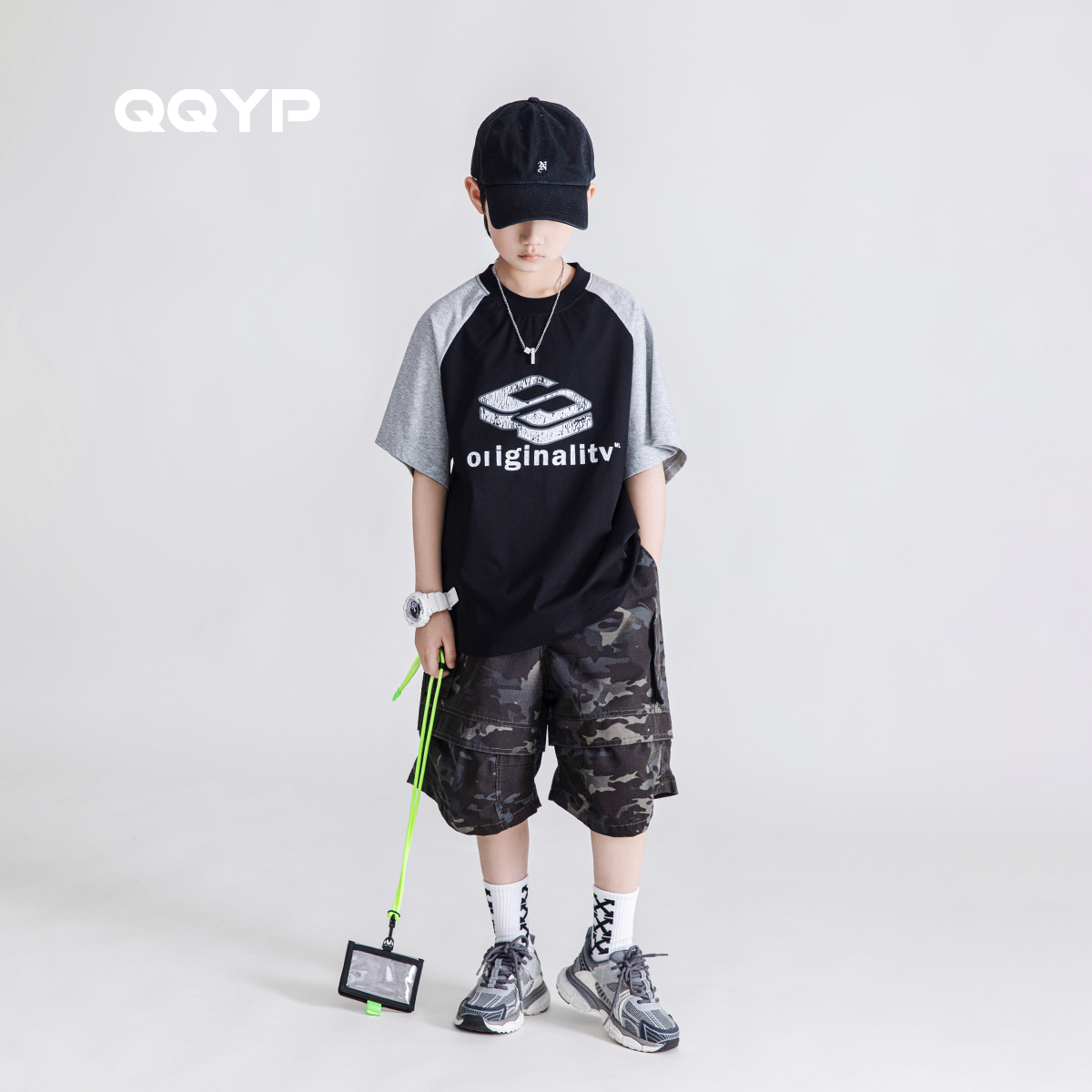男童短袖T恤2025夏装新款潮酷插肩袖半袖中大童儿童拼色体恤上衣