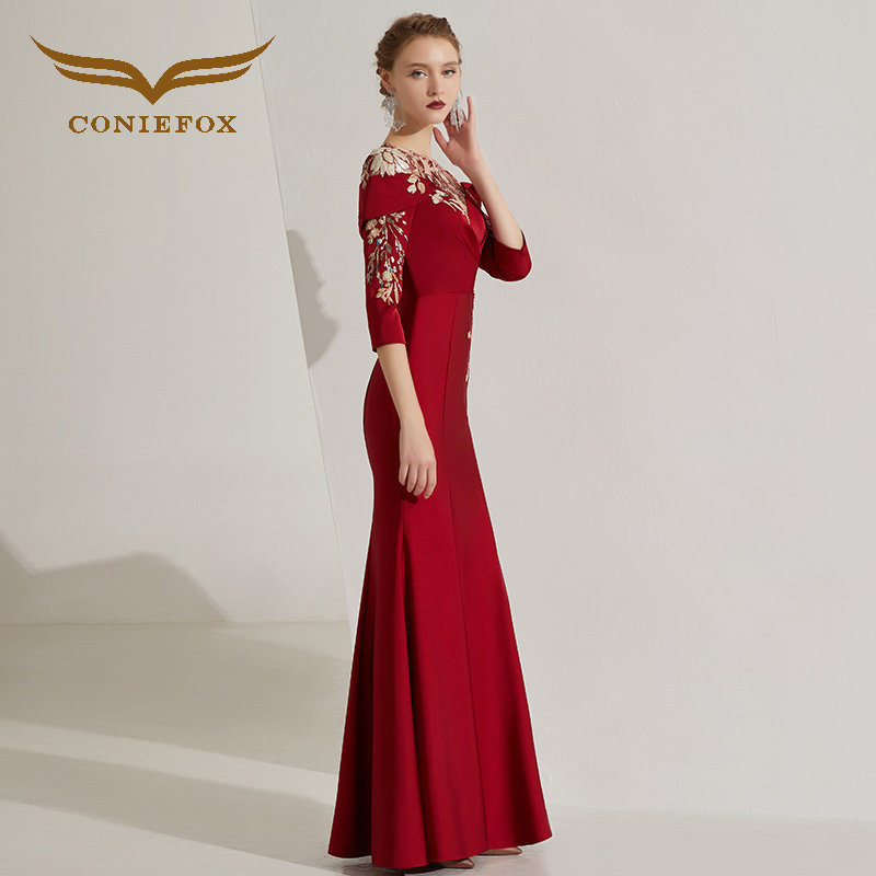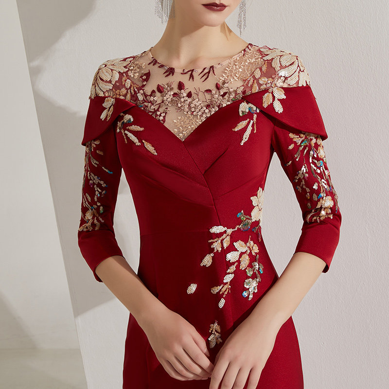 酒红色答谢晚宴礼服高端宴会