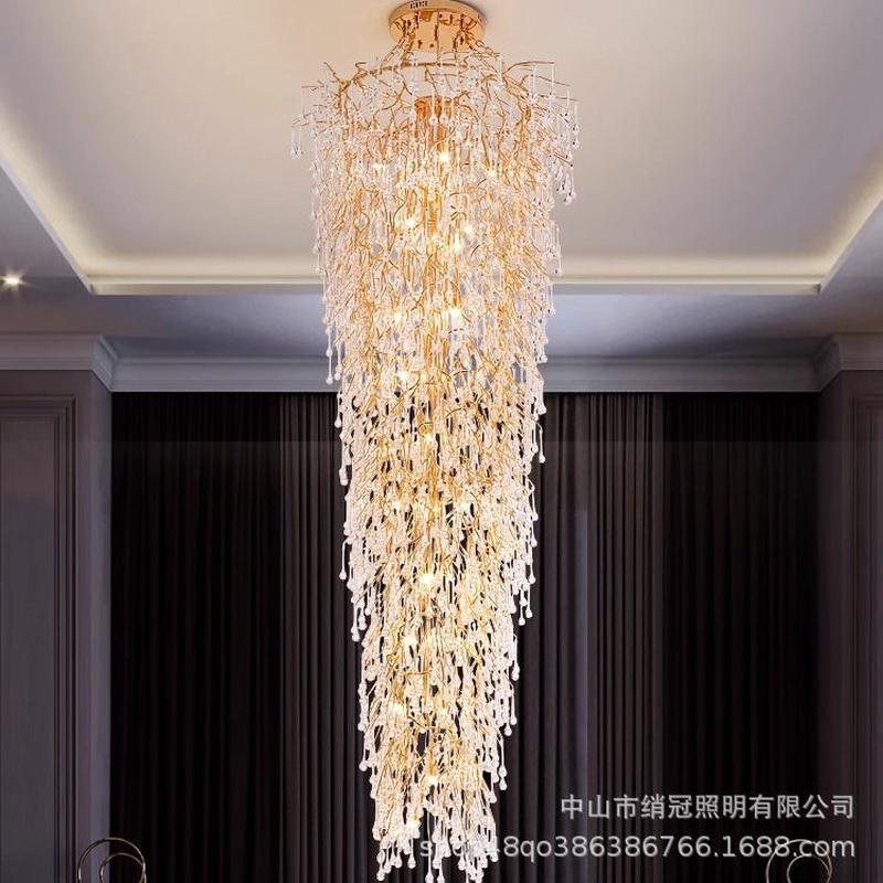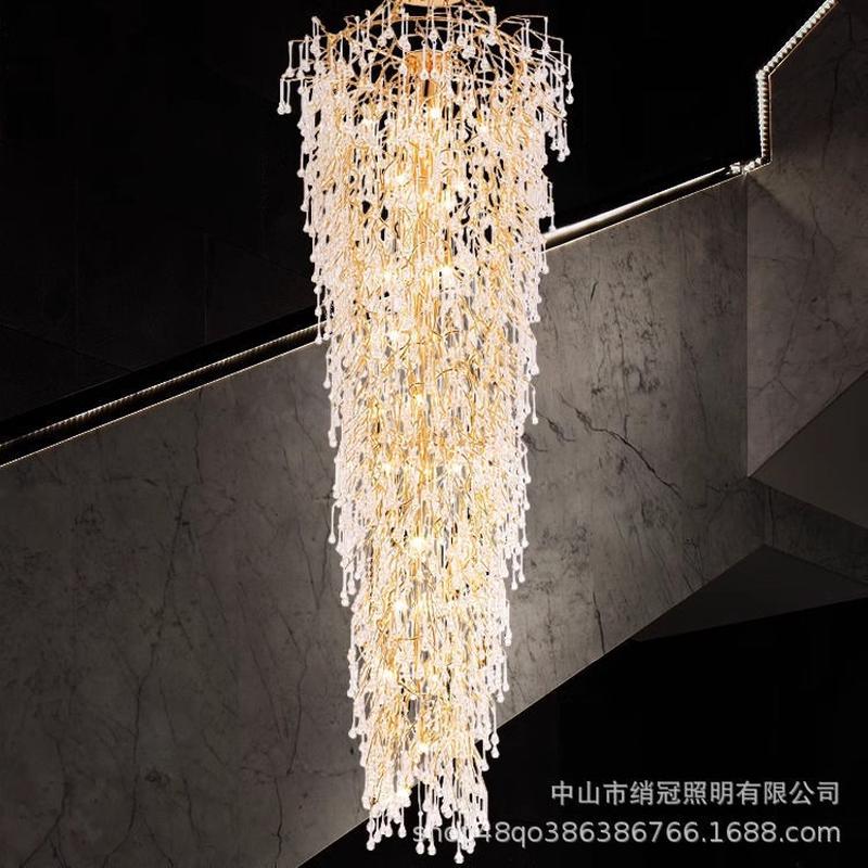 热销别墅长吊灯楼梯旋转楼梯间轻奢水晶复式大吊灯挑空中空大客厅