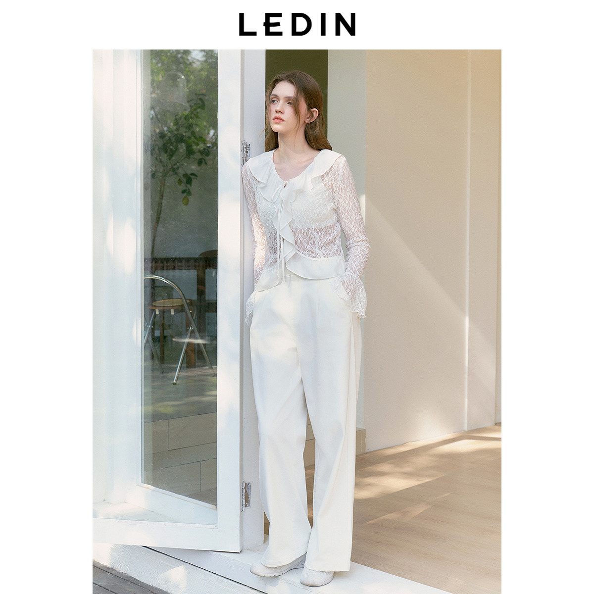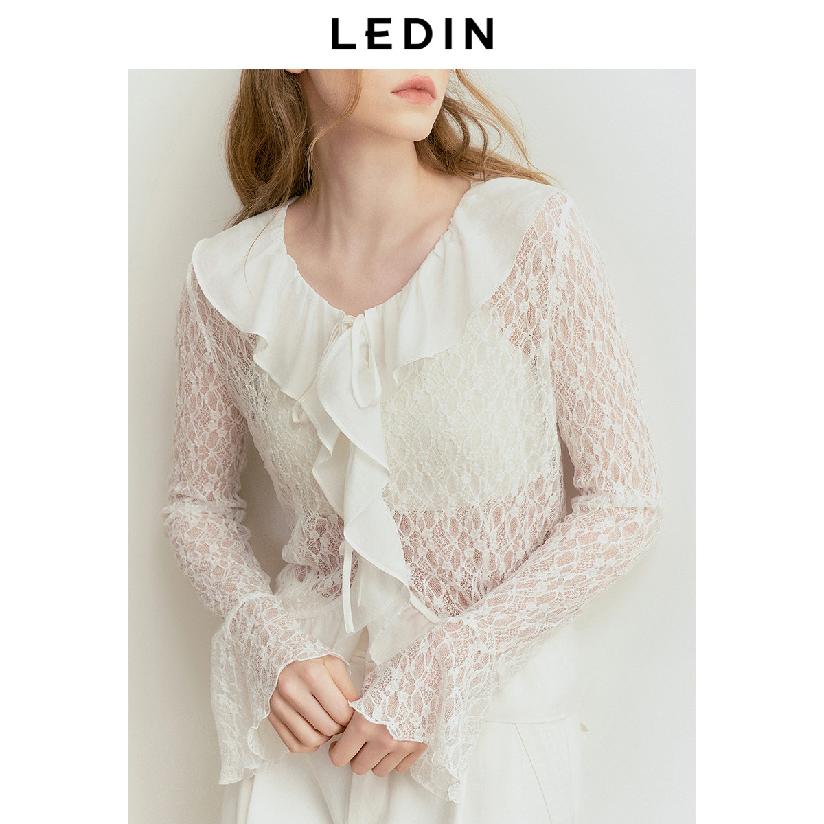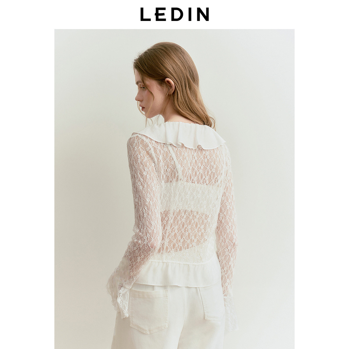 乐町蕾丝荷叶边长袖雪纺衫2025春季新款设计感袖口宽松开衫上衣