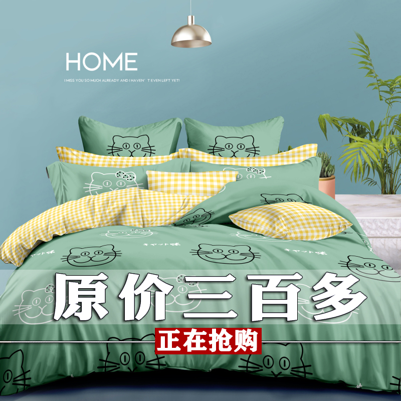 四件套全棉春秋床上用品1.51.8米学生单人双人纯棉被罩简约床单式