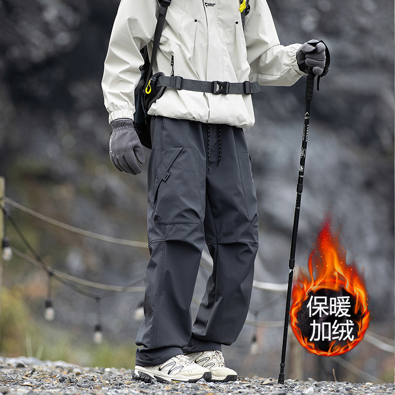 中国冲锋裤男士秋冬户外徒步防风防雨多口袋工装裤宽松运动休闲裤