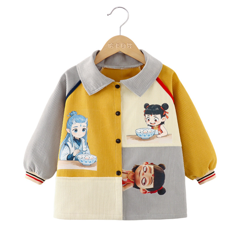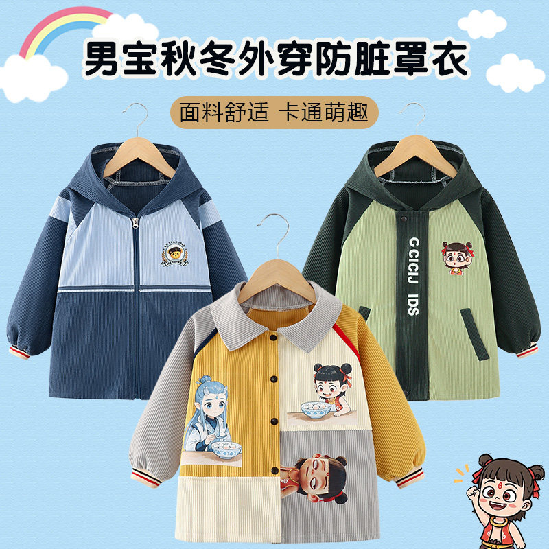 儿童罩衣大童套羽绒服的围裙宝宝防脏外套灯芯绒护衣秋冬外穿洋气