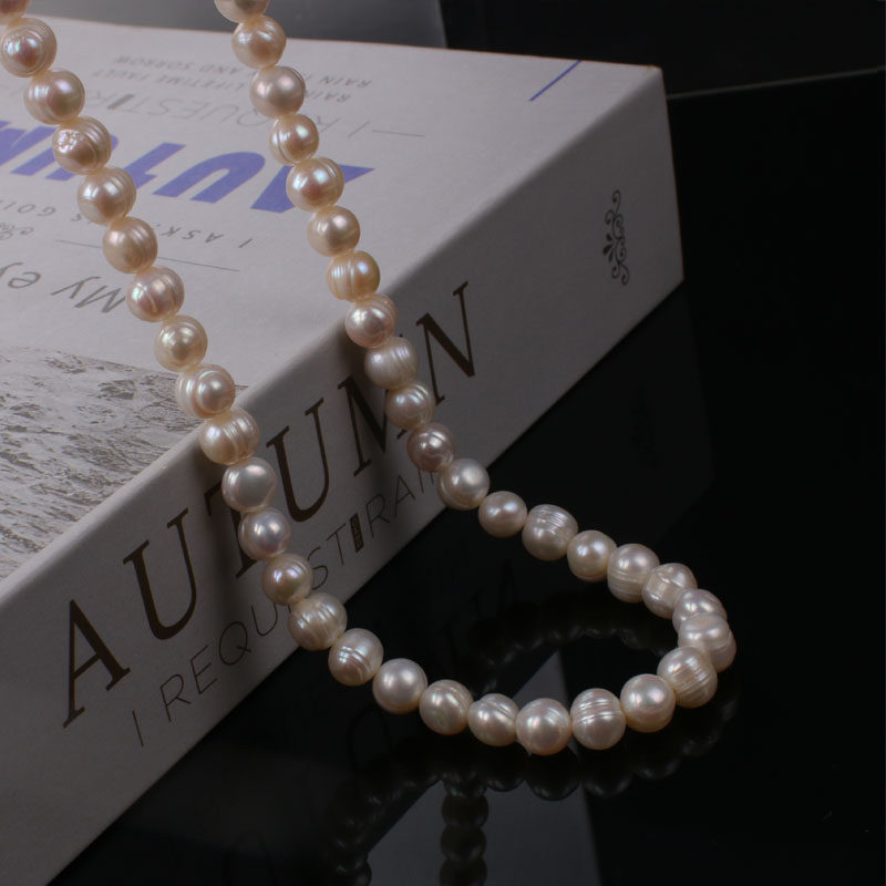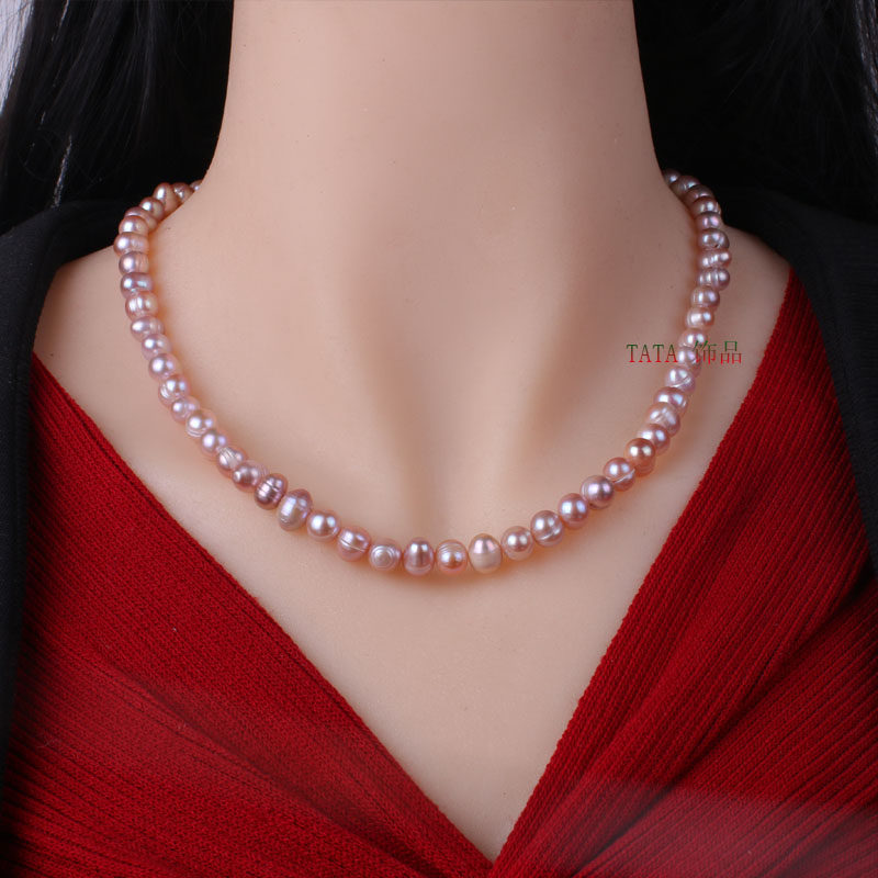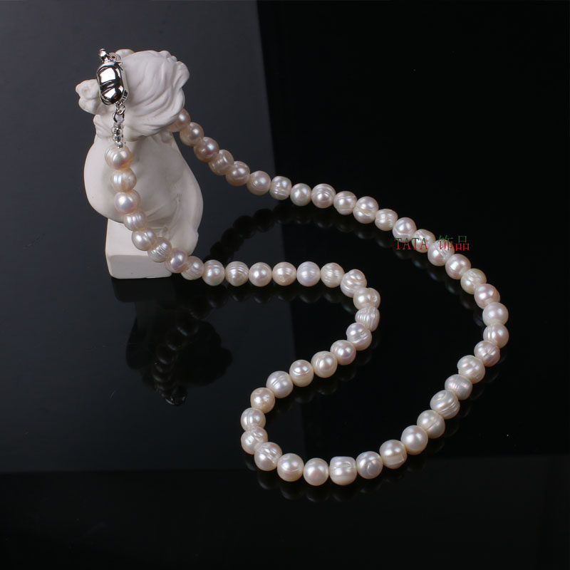 天然淡水珍珠项链7-8mm白近圆冲头土豆圆螺纹珍珠锁骨链百搭颈链