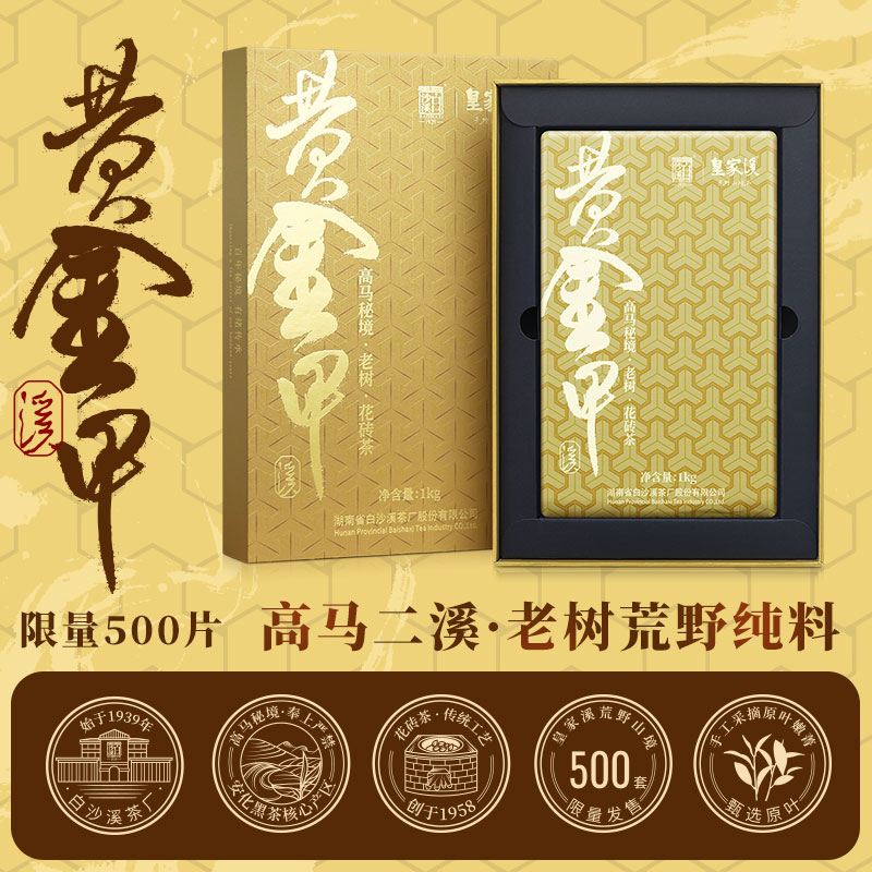 白沙溪湖南安化黑茶正品皇家溪高马产区黄金甲花砖茶1kg荒山茶叶