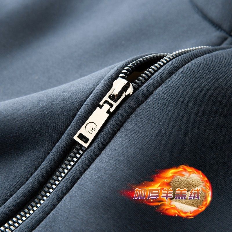 质感羊羔绒夹克外套男士棉服加绒加厚开衫卫衣男冬季中老年棉衣19