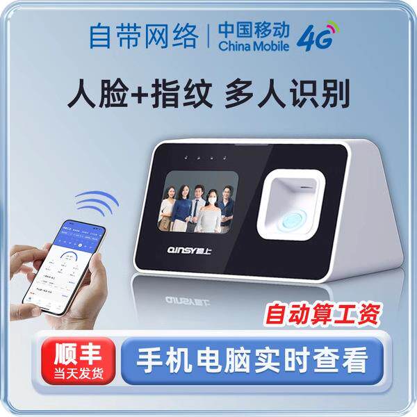 勤上云考勤机打卡机自带网络多人脸指纹识别机员工上班面部签到机