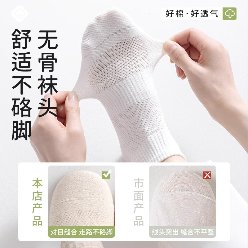 无骨袜子女士夏季薄款纯棉防臭中筒袜网眼凉感透气空调袜女款短袜