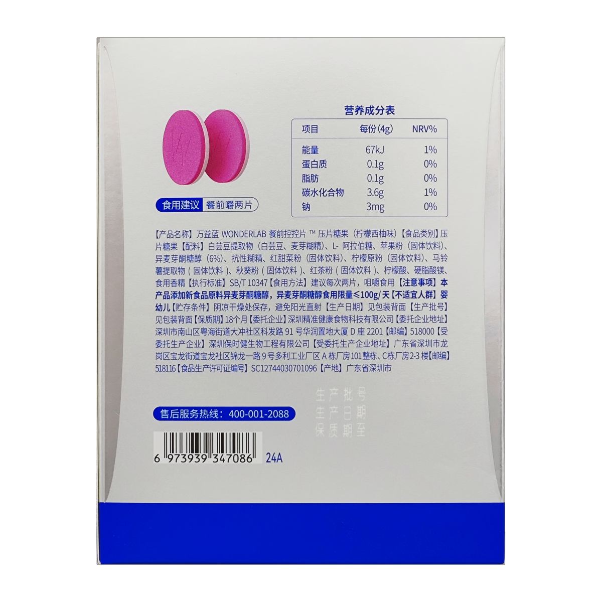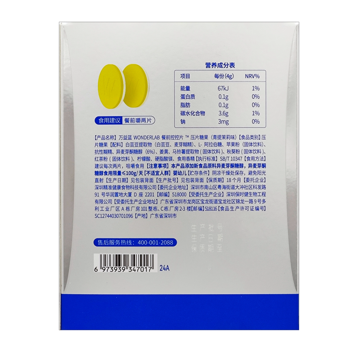 万益蓝WonderLab白芸豆压片餐前控控阻断片大餐救星饱腹官方正品
