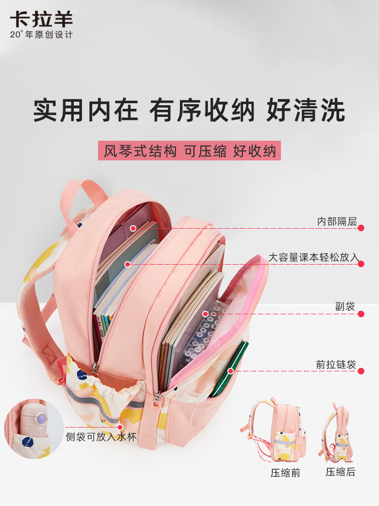 卡拉羊小学生书包男一年级轻便减负大容量双肩包儿童出游背包女生