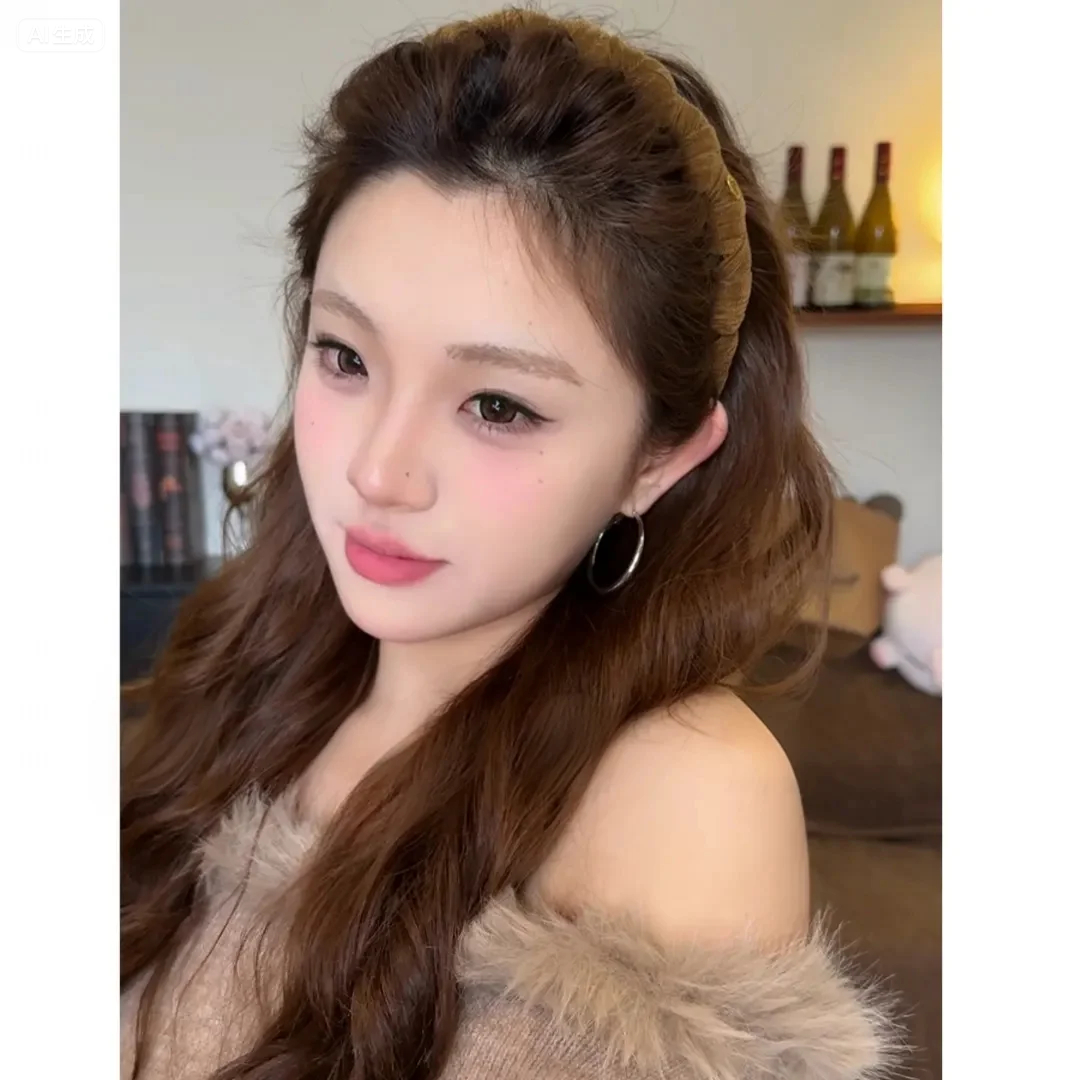韩系丝绒金标带齿发箍女秋冬高颅顶头箍外戴试试那个复古发卡发饰