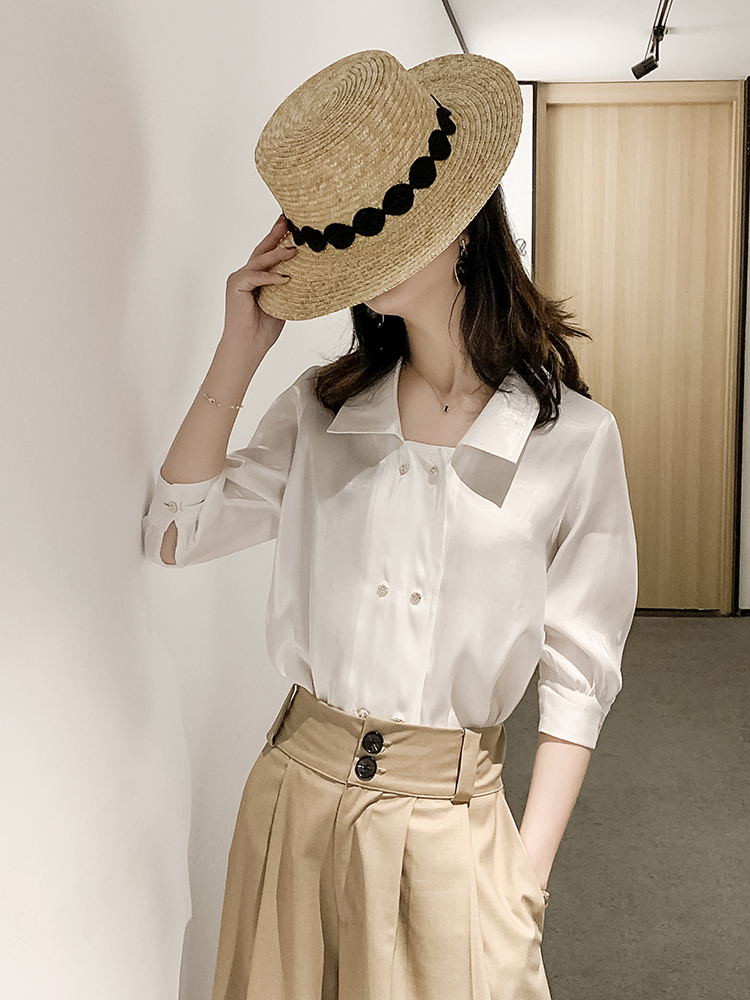 雪纺衬衫女设计感小众轻熟港风夏季复古法式职业气质通勤中袖上衣