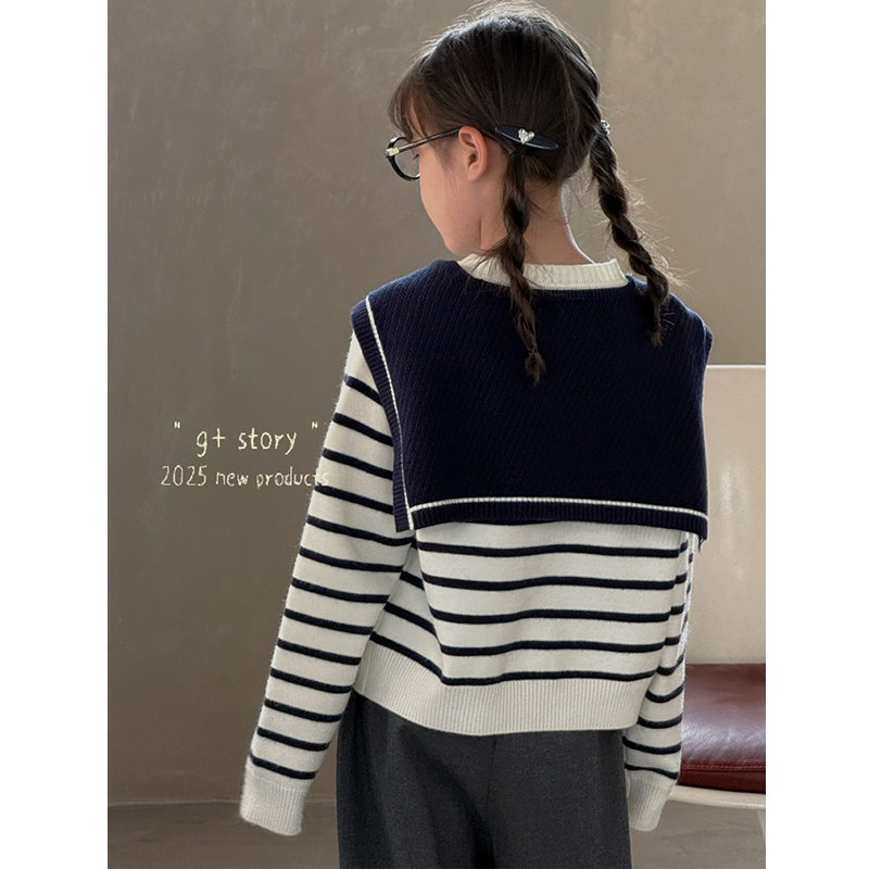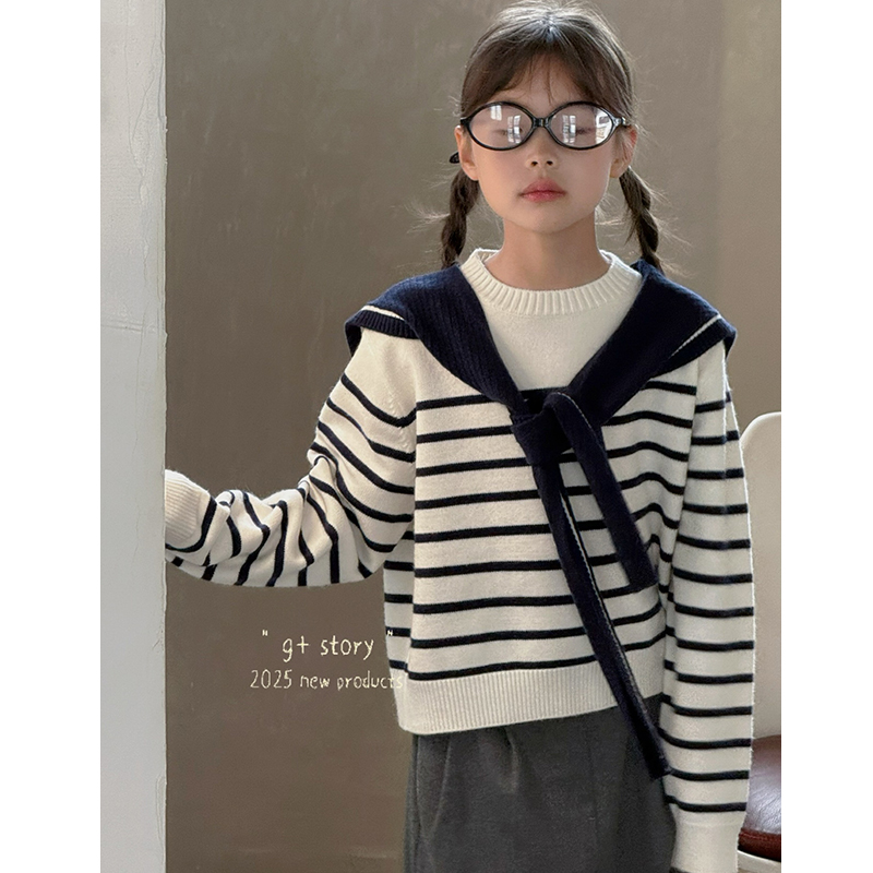 G+童装2025秋季新款男女童海军风披肩条纹毛衣羊毛衫针织衫52807