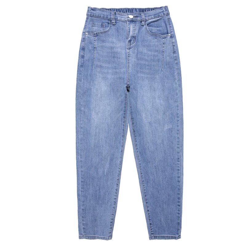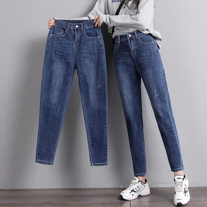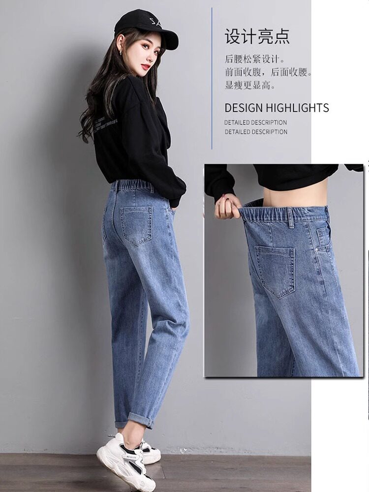 松紧腰牛仔裤女春秋季九分弹力哈伦裤2025秋季新款高腰显瘦老爹裤