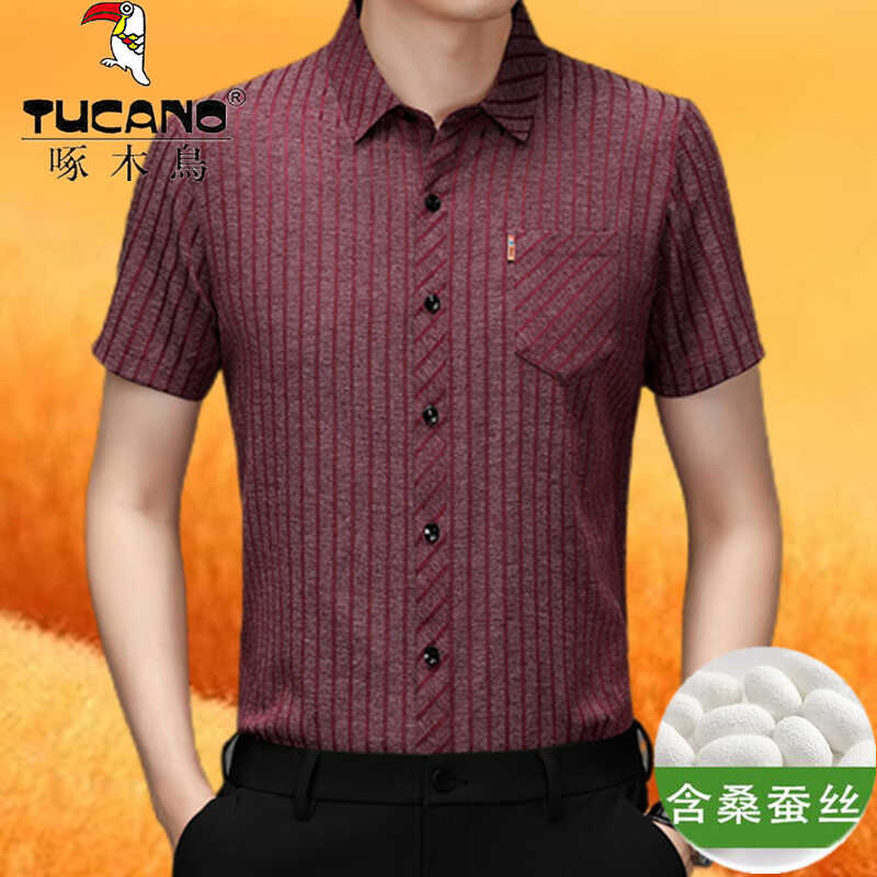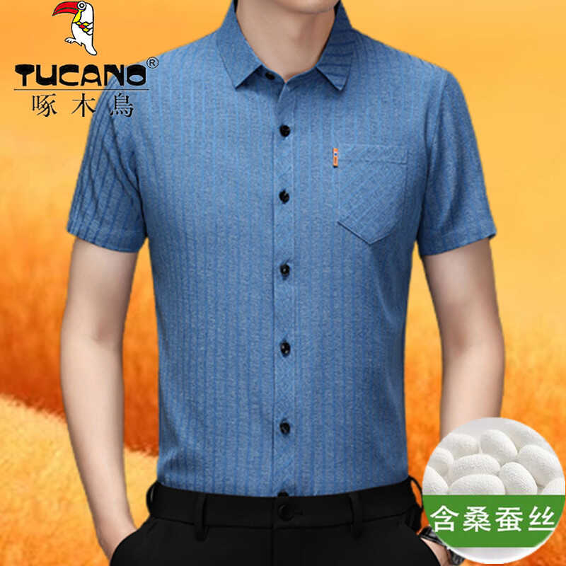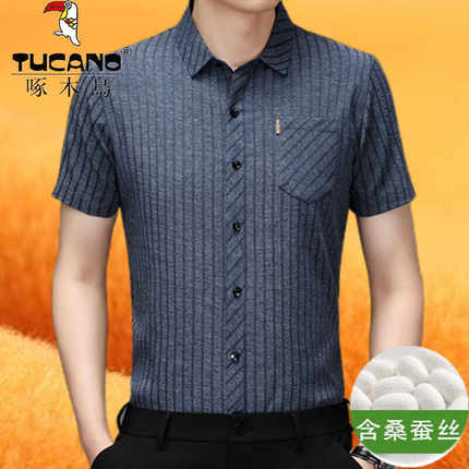 含桑蚕丝口袋中年男士衬衫啄木鸟