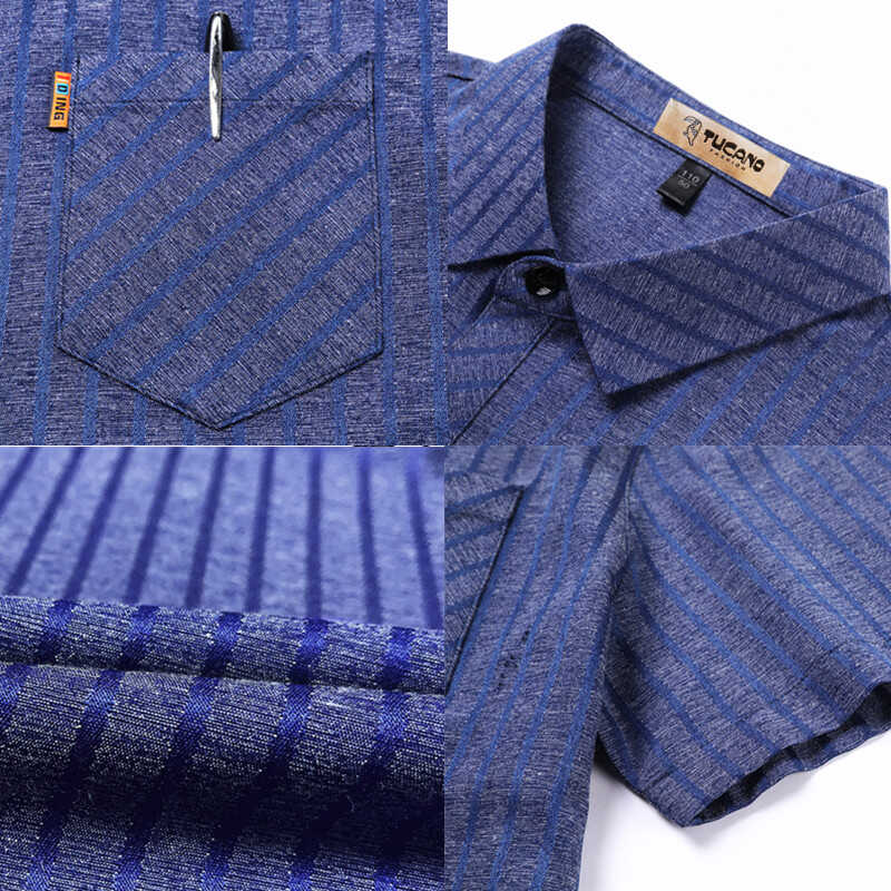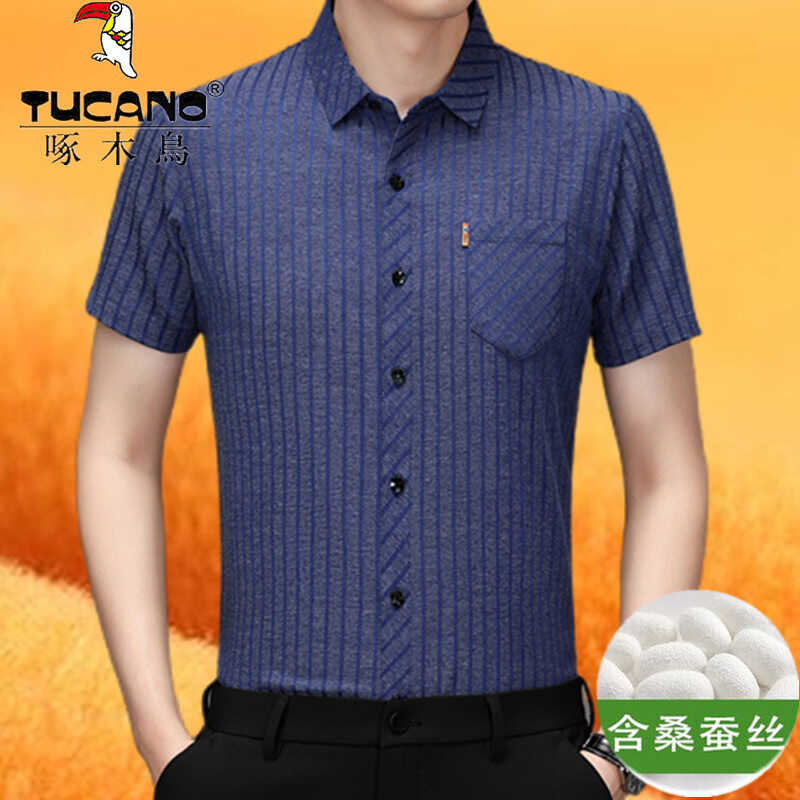 啄木鸟男士衬衫亚麻含桑蚕丝口袋短袖垂感夏季新款中年免烫衬衣男
