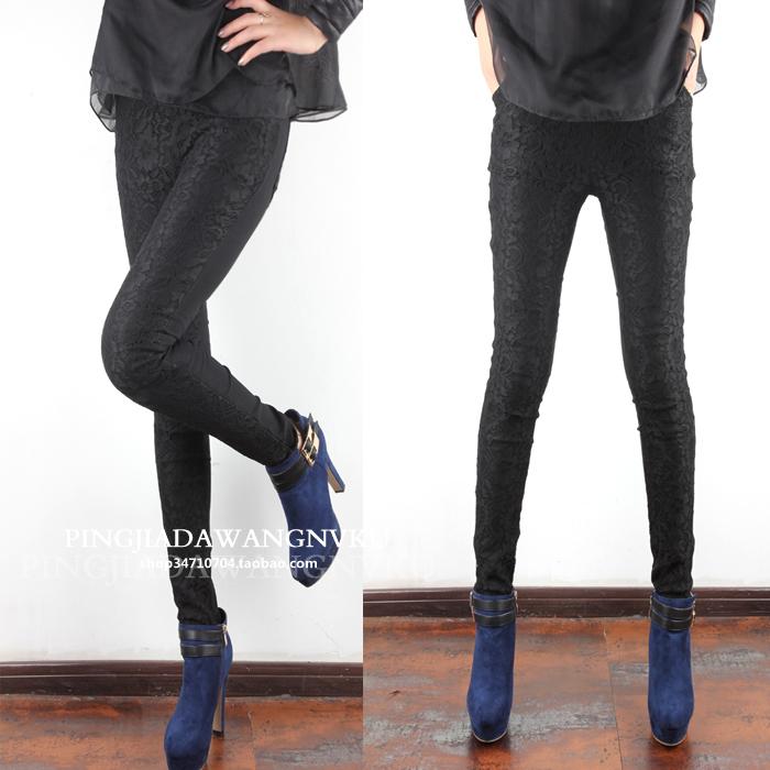 2022秋季新款蕾丝加绒保暖打底裤加大码显瘦外穿小脚裤韩版女长裤