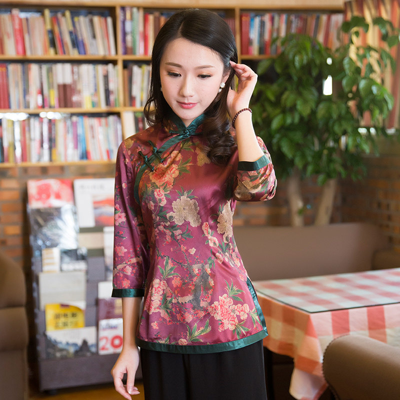 如意风春秋唐装女中国风旗袍式上衣短款改良复古茶服斜襟盘扣女装