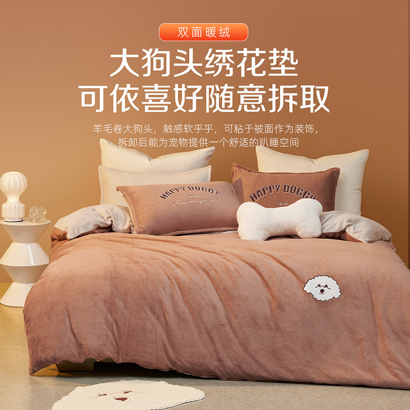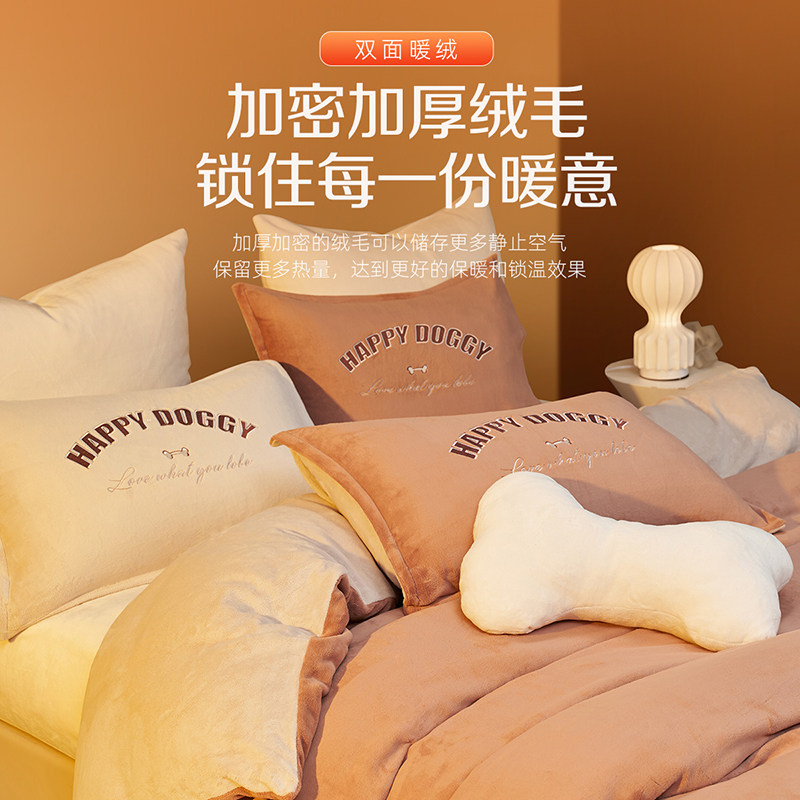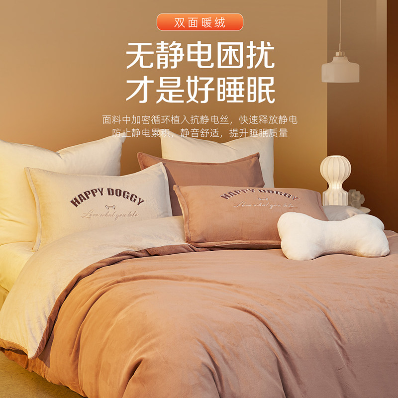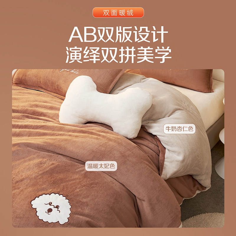 【包文婧】梦洁家纺牛奶绒三四件套加绒秋冬保暖床单被套珊瑚绒