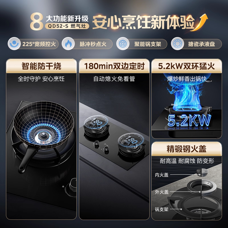 美的家用燃气灶智能定时防干烧双灶具灶台液化气天然气官方QD52-S