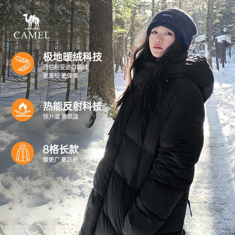 【小虫系列】骆驼女装长款羽绒服女冬季2025加厚保暖防风连帽外套