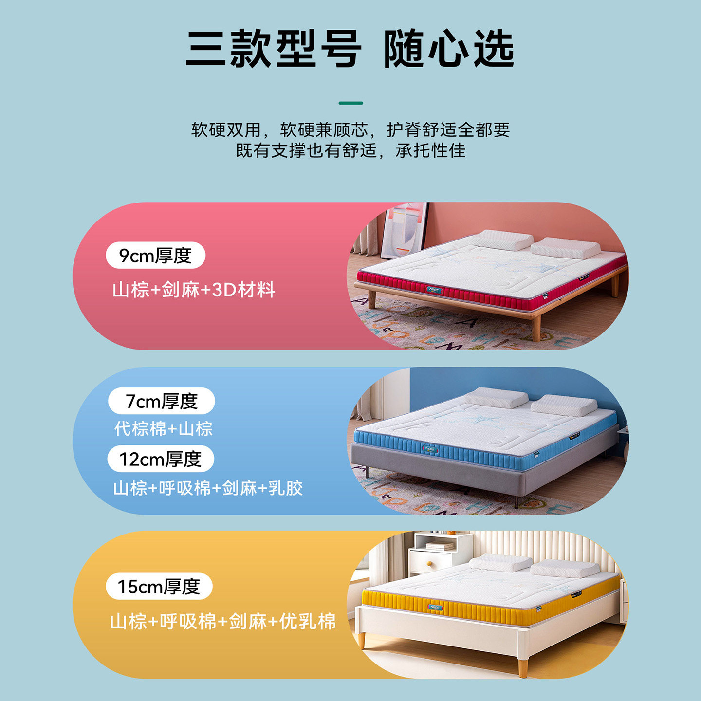 大自然青少年床垫儿童5A级护腰护脊山棕床垫棕榈抑菌防螨家用定制